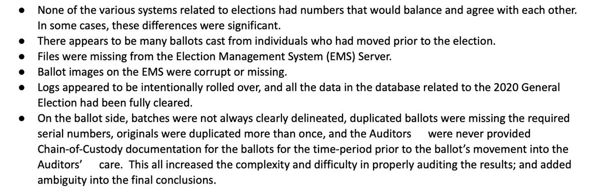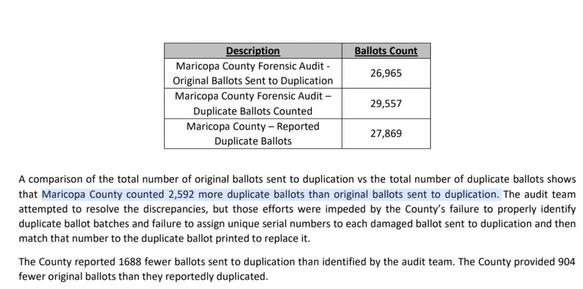 DRAFT Maricopa Audit Report: 🚫None of the County's election numbers match 🚫Ballot images "corrupt or missing" 🚫Election data apparently intentionally deleted 🚫Illegal ballots counted from people who had moved 🚫Ballots duplicated "more than once," missing serial numbers https://t.co/oHji7fCMS4