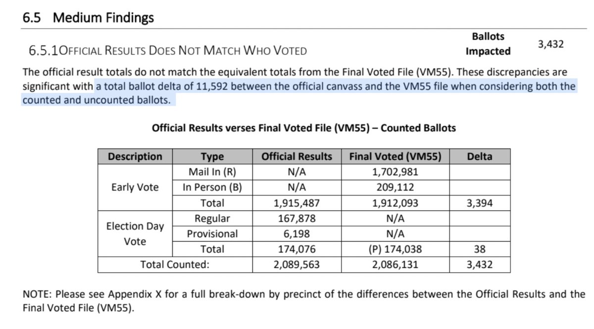 MORE: The second machine recount, which was used to certify 2020’s presidential election results, was almost 18,000 votes SHORT Ultimately the results included: 3,125 duplicates 20,713 ballots from 10 scanners with NO election documents Total of 17,852 missing ballot images https://t.co/oo0L1Uyr9m
