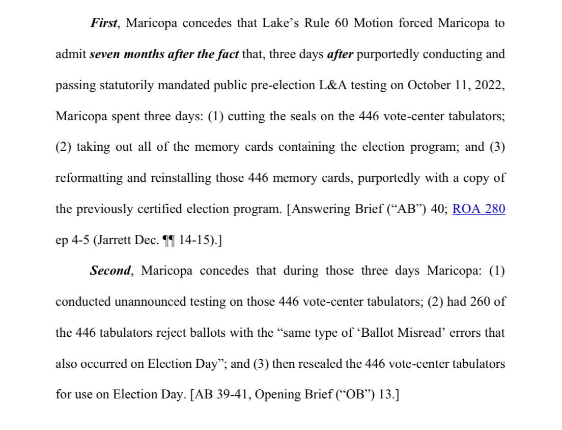 Maricopa County did not follow the law with regards to Logic & Accuracy testing on Election Day tabulators https://t.co/P9ZOWmaQxl