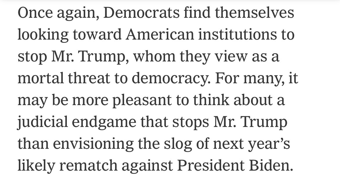 They’re literally bragging about their election interference in The NY Times President Trump is the “gravest threat” to Biden in 2024, so we have to raid him, arrest him, and remove him from the ballot “We must destroy democracy to save democracy”! https://t.co/RrWQzCMLJS