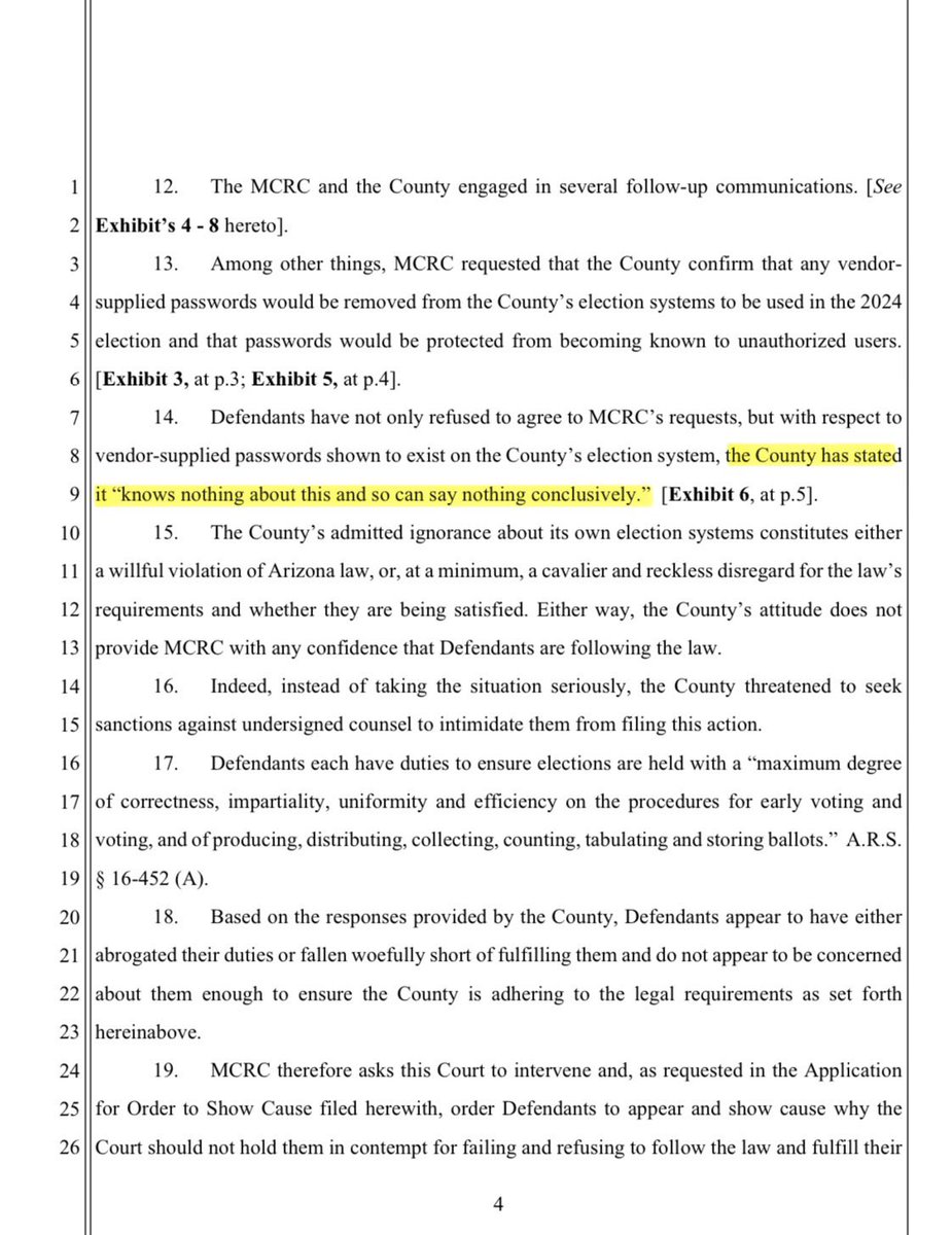 🚨Maricopa County Republican Committee sues Maricopa County, demands secure election🚨 When confronted with its own passwords and the fact they are illegal because they are vendor-supplied, Maricopa County claimed it “knows nothing about this.” Who’s running the election!? https://t.co/b5LLczu8x4