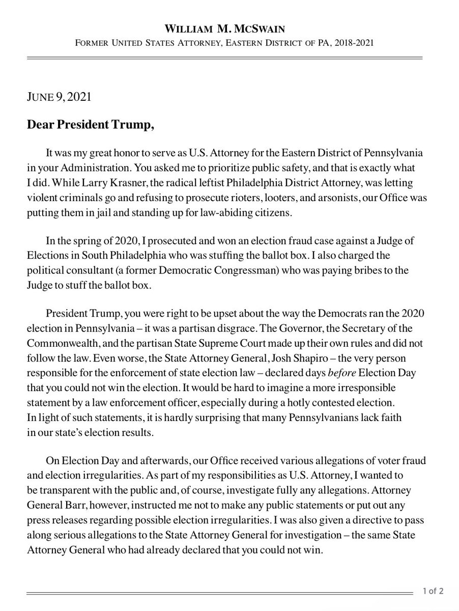 While Bill Barr was publicly claiming there was no fraud in 2020, he PRIVATELY ordered those with credible fraud evidence to stand down Barr gave the same stand down order to U.S. Attorney Bill McSwain in PA, telling him to hand over all investigations to the Democrat AG https://t.co/nRgk4rmzyt