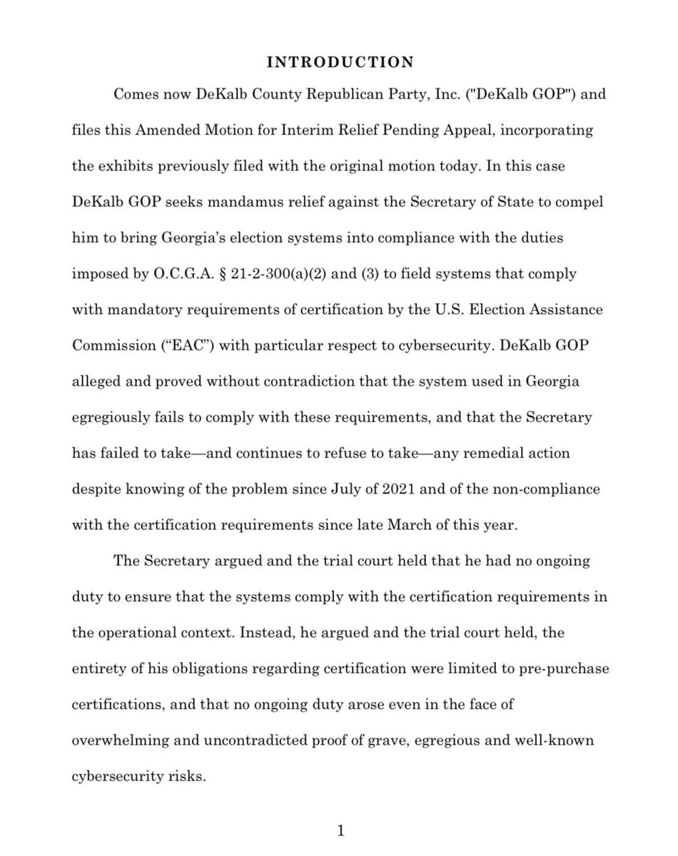 🚨🚨DEKALB GOP APPEALS ENCRYPTION KEYS CASE🚨🚨 Raffensperger’s lawyers argue he has no ongoing duty to ensure the voting system meets security standards “even in the face of overwhelming and uncontradicted proof of grave, egregious and well-known cybersecurity risks.” https://t.co/gXGCxMsxMX
