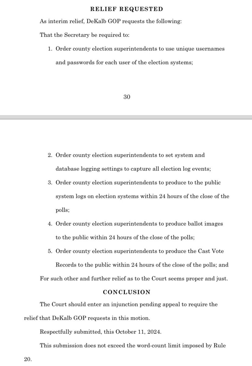 DeKalb GOP asks Georgia Supreme Court: Make them use different passwords Ensure all election log events are captured Produce to the public system logs, ballot images, and Cast Vote Records within 24 hours of close of the polls https://t.co/cY7QvFRZzp