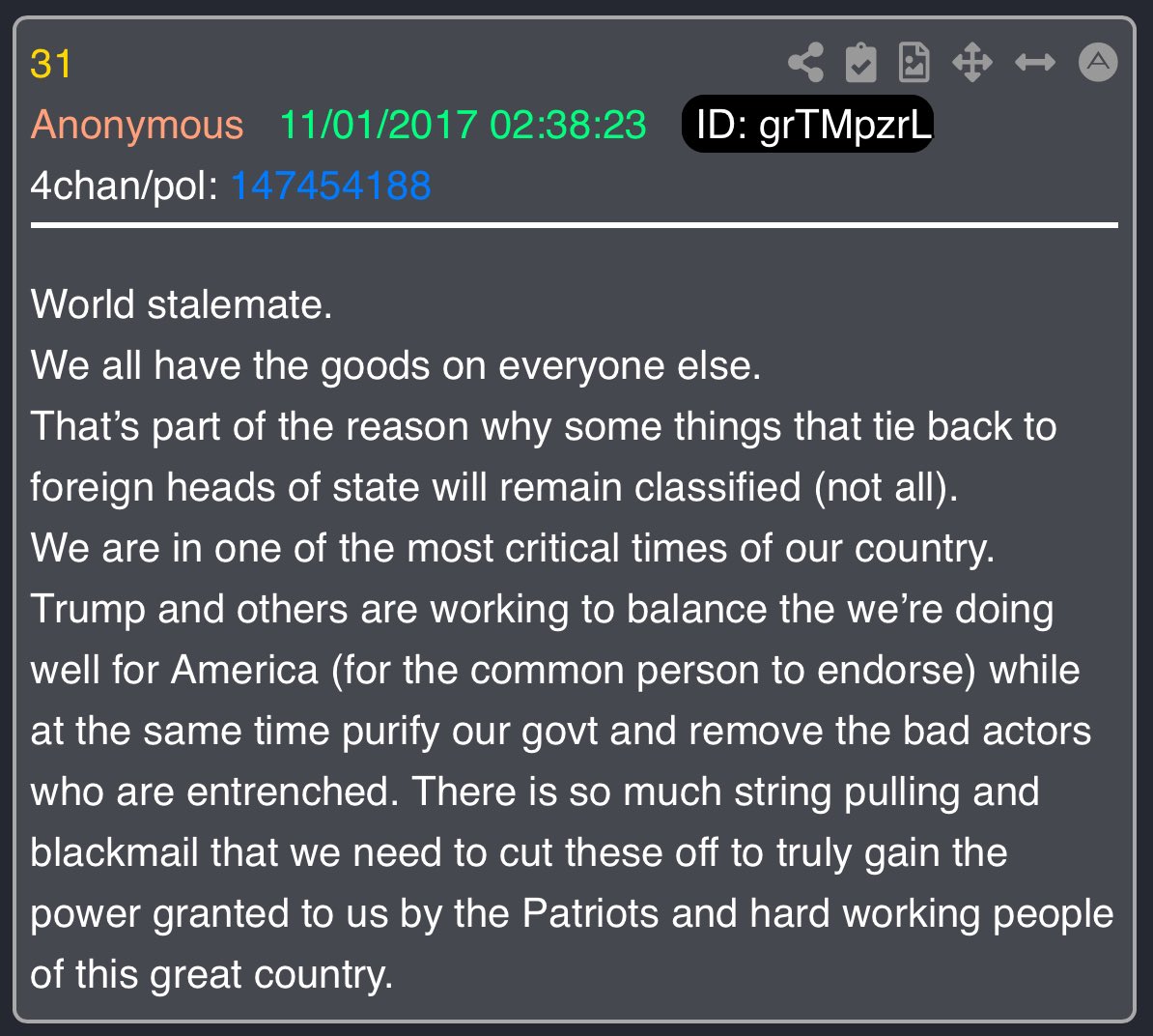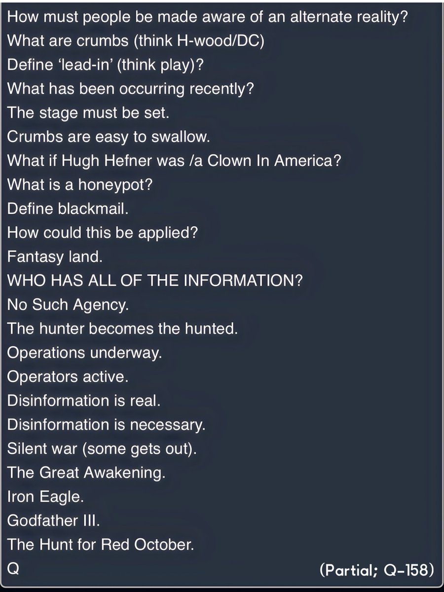 Imagine THIS. Raw intel collection. Narrative FEEDER. Narrative COLLECTORS. Narrative DISTRIBUTORS. LEAKS. CLASSIFIED. PAYMENTS. FOREIGN ACCOUNTS. CASH. SPOOK FILES. HOTELS. BLACKMAIL. How do you retain 'Freedom of the Press' if those in front of the camera [trusted by select viewers] are extensions of the ARM? Freedom of the Press is VITAL to retain. TRUST THE PLAN. THERE ARE A LOT MORE GOOD THAN BAD. You, THE PEOPLE, need to remember how TO PLAY. You, THE PEOPLE, have the POWER. We STRIKE every SINGLE DAY. We WIN every SINGLE DAY. EVERY SINGLE DAY THEY ARE BEING DESTROYED - LITERALLY. STAY STRONG. HAVE FAITH. THIS IS BIGGER THAN ANYONE CAN IMAGINE. Q