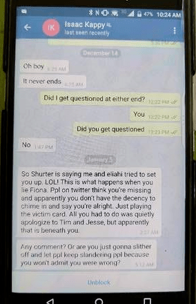 Isaac Kappy MEGA Thread Part 2 After the plan to entrap Fiona was sabotaged by Isaac himself, he goes back to the US. Eliahi kept $18K+ worth of BTC that Isaac meant to invest in blood diamonds to sell them in the US & make a profit. EP says they had a falling out over Q, LOL.