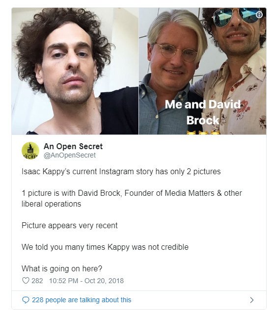 Kappy appeared at the 2018 Politicon conference photographed w/ Zionist social media princess Laura Loomer and Media Matters mastermind David Brock, before he skipped the country to spend a summer in Australia. Once there, he stayed at SRA survivor Fiona Barnett's house.