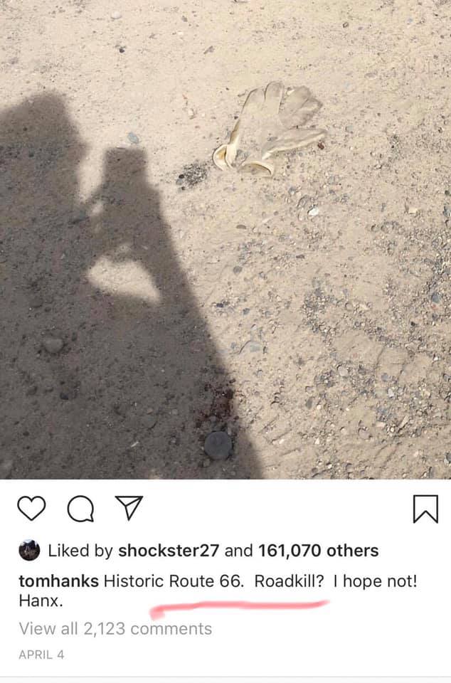 Tom Hanks, the A-lister called out by Isaac as a pedo, tweeted about “roadkill” on Route 66 while filming a movie in Albuquerque where Isaac was from. Posted 42 days before Isaac "jumped". He was 42. Masonic symbolism? You can see a cap in the dirt with a P carved in it "Cappy?"