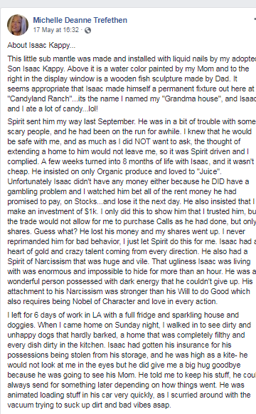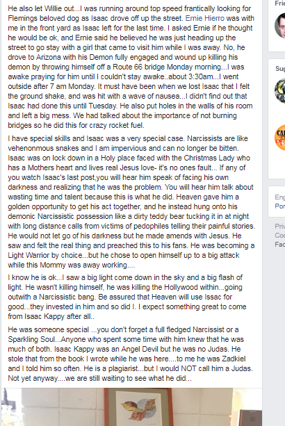 Before his death, Isaac left an ominous message on IG, all the previous content was deleted. In the post, he signed out with the legend "RETURN OF THE KING". That's the name of one of Eliahi Priest's AWFUL hip hop songs, you can see him coked up rapping on FB video & Soundcloud.