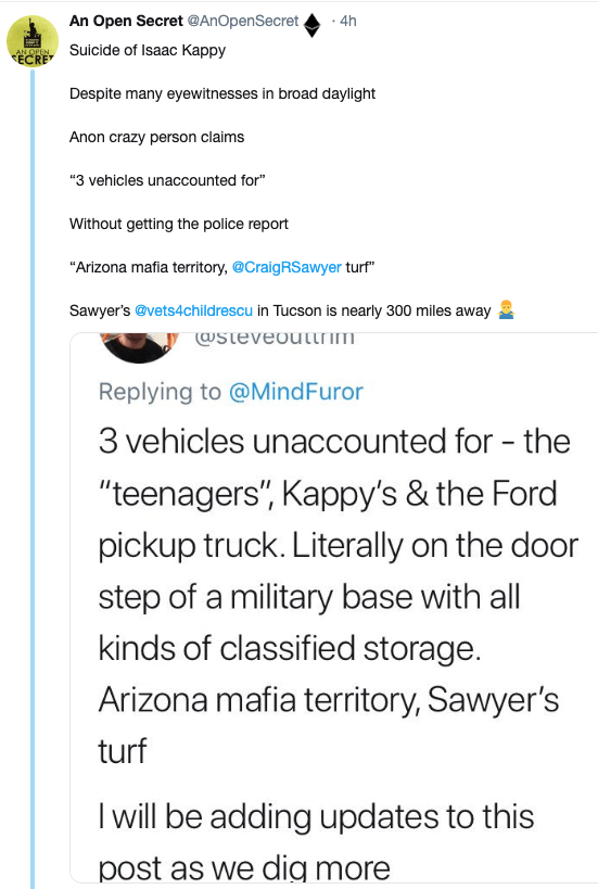 @spce999 @LauraLoomer Here's Isaac Kappy's 'dead man's switch' that was posted shortly before his tragic untimely death. I can't tell you what to believe. I can give you context and places to start looking. https://t.co/hVhWeAbAbE