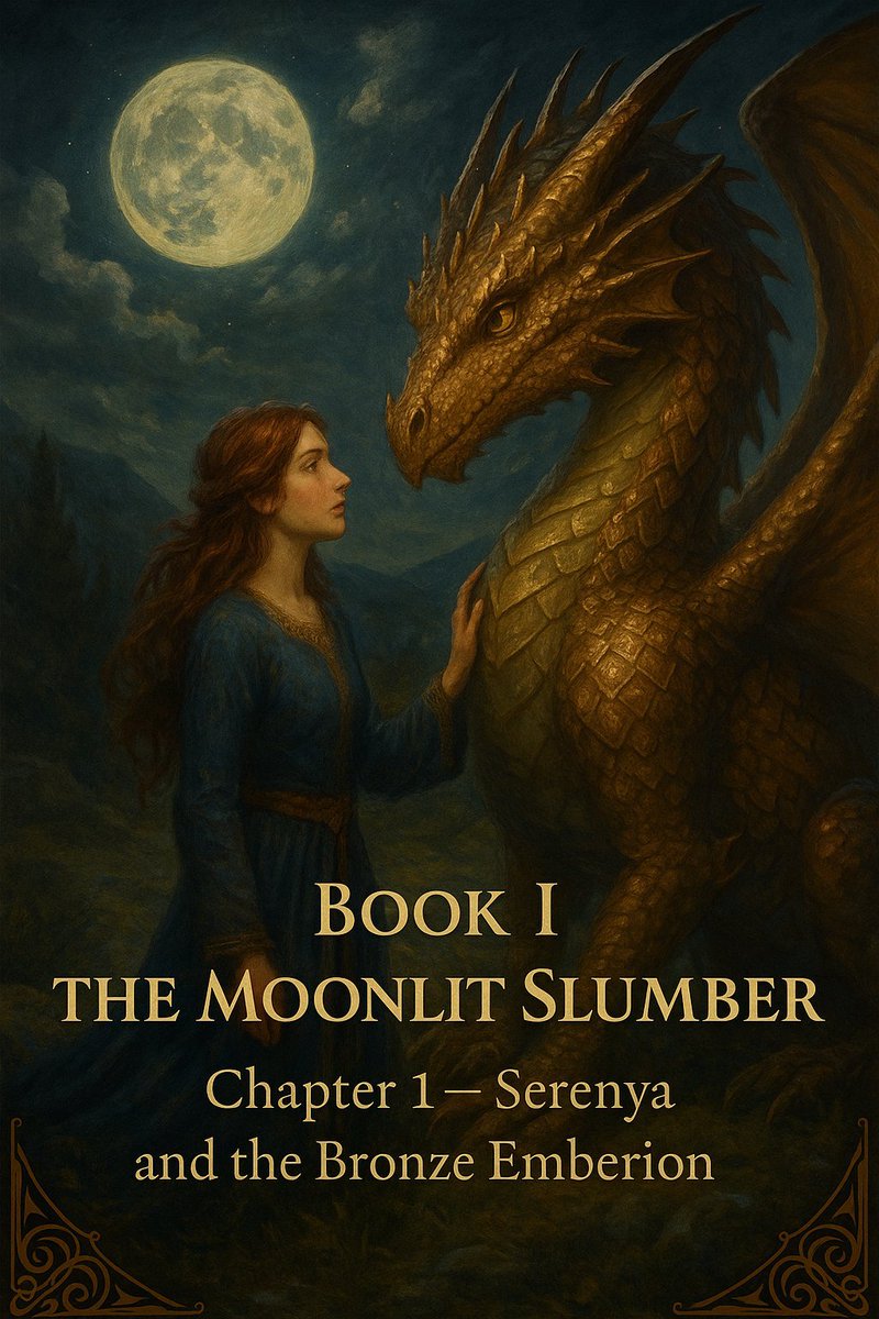 Volume I of the Silver Accord Saga Book I: The Moonlit Slumber Patreon Link: https://www.patreon.com/collection/1706510 Chapter 1 — Serenya and the Bronze Emberion To be told at first light, when frost leaves the grass reluctantly and kettles begin to sing. Serenya woke before the bell because songs prefer to arrive unannounced. She lay listening to the Vale’s old timber breathe—the rafters ticking, the clay stove sighing out its last heat, the narrow windows blanching with a moon-tired dawn. A thread of melody had followed her from sleep, catching on her ribs like a sleeve on a nail. She hummed it once, and the note hung in the air with the posture of a question. “Too early,” she whispered to the silence. But dawn has its own opinions. Beyond the threshing yards and the moss-greened troughs, the high cornices glowed, and the Skylorn Peaks stood with their shoulders under the light. The wind came down from the ledges smelling of stone, pine, and the iron-bright scent of snow arguing with spring. On mornings like this, the Vale remembered how to be simple: bread, salt, water, rope, names. Serenya swung her feet to the floor and bound her hair. She dressed in the work tunic of the Cantor’s House—undyed wool, patched at the elbow—and laced her boots double. The song still murmured within. She set it gently on her tongue and let it ride behind her teeth as she went, small enough not to frighten the day. In the yard, the practice post wore a crown of frost. She laid her palm upon it until her fingers smarted, then sang a single note into the grain. The frost beaded, listened, and melted as if persuaded. “Apprentice tricks,” she chided herself, though a thread of pleasure remained. A cart clattered past, driven by Kaelion from the forge, his shoulders broad, eyes already ash-bright. He lifted two fingers. “You’ll sing the weather tame next,” he called. “Leave a little wind for the bellows.” “I’ll sing you a steadier anvil,” she answered. “Yours walks about when you’re not looking.” They grinned. In the Vale, teasing was the glue between fear and courage. The Festival of Moons does not begin at dusk, as maps claim. It begins at breakfast with women hauling barrels of damp wheat to the ovens and men arguing about rope lengths in voices carefully louder than anxiety. It begins with children chalking stars on stones, with elders polishing the Accord Stone’s lip with cloth and spit, with Cantors testing the bell to see if it will answer. This morning, the bell gave a sound like a coin tapped by a nail. Satisfactory. Not the full-throated tone it had boasted in the days when Lyra herself was rumored to have walked the Vale (the elders never agreed if this was history or hope), but clean enough to tell the hour without unnecessary poetry. Serenya spent the first hours on errands—fetching oil for lanterns, lending pitch to the poles that would carry them, fetching water for the hands sticky with pitch. The melody persisted, a shy animal pacing just beyond the tree line of her mind. When Matron Evela of the Cantor’s House called for scales and posture drills, Serenya obeyed; when Evela demanded that feeling be kept from the throat until it learned its manners, Serenya tried. Feeling rarely keeps the hours it is given. “Today you will sing the naming measures for the hatchery,” Evela said at last, measuring Serenya with a look reserved for ropes and masts. “Clear vowels. No heroics.” “No heroics,” Serenya promised, though her heart argued for just one. The Hatchery occupied a shallow bowl of stone just below the cornice where, in those days, only one dragon had ever been known to leap and return. No one owned the eggs. They were found, as weather is found or courage—after a hard season, a prayer, a mistake. Sometimes the bowl lay empty for years. Sometimes a dozen shells glittered there like the knucklebones of stars. Today there were three. The first was the blue of deep water as remembered by an old man. The second, green like a pine needle held to the sun. The third seemed bronze at first glance, but when the wind shifted it showed a sheen not quite any metal the Vale used—a shimmer the eye could not name without borrowing words from the night. The Cantors stood on the outer ring. The children were kept two rings back, for sense rather than safety—eggs do not bite, but the first breath of a dragon can steal the breath of a crowd for longer than is comfortable. The Weyrwardens stood with coils of rope they would not need but would not be without. Kaelion and the other forge apprentices waited with surprisingly clean hands. Serenya took the center, face to the bowl, bells behind her, wind at her back. “Clear vowels,” she mouthed. “No heroics.” Then she lifted her hands to gather the air as a baker gathers flour. She sang the Measures: the notes that say we are listening and your name is welcome here. The Vale knows a thousand songs for rain, woodcutting, courtship, sleep. The Measures are not music precisely; they are permission shaped by breath. On the fourth line, the bronze egg shivered as if a fish had turned beneath its surface, and Serenya stepped half a pace closer without meaning to. The shell parted with a delicate precision, as if not to startle itself. A wet foreclaw pressed the edge, then the confessing length of a jaw, the scallops of a folded wing. He was not large—no larger than a hay-cart—but the space rearranged itself around him as though accommodating a principle rather than a creature. Bronze, yes, and something more: the color of hearth embers seen through closed eyelids. He sneezed. The sneeze sent sunlit droplets in an arc that hung for a scandalously long moment before gravity remembered its duty. Laughter broke like a small tide around the rings. Serenya did not laugh. Her throat had gone dry as a spent wick. “Name him,” whispered Evela, not unkindly, for even strict women understand when the grou