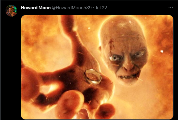 In the Lord of the Rings, Smeagol is first to find the Ring. While in his possession, he transforms into the creature "Gollum", which is taken from the Hebrew word 'golem'. Gollum dies with the Ring at 589 years old and completes the Circle. 5x8x9 https://t.co/eJHFMPlNWd