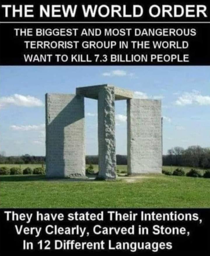 グローバルエリートたちは地球上の人口を5億人に削減するつもりなのかもしれません。 #ジョージアガイドストーン🌸🐰🌸 👇 新世界秩序(NWO) 世界最大かつ最も危険なテロリスト集団は、73億人を殺そうとしている。 彼らはその意図を12の異なる言語で、非常に明確に、石に刻んで明言している。