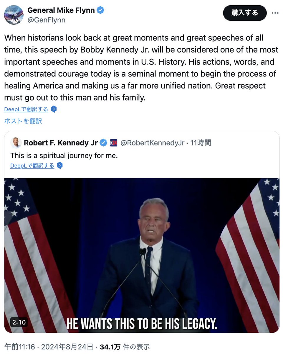歴史家が歴史上の偉大な瞬間や偉大なスピーチを振り返るとき、ロバート・ケネディ・ジュニアのこのスピーチは、米国史上最も重要なスピーチと瞬間の 1 つとみなされるでしょう。 彼の行動、言葉、そして今日示された勇気は、米国を癒し、より団結した国家にするためのプロセスを開始する重要な瞬間です。 この人物とその家族には、多大な敬意を払う必要があります。