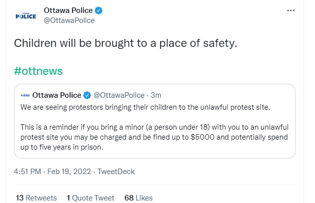 631. Looks like that police tweet about children earlier was to get ahead of the narrative as they knew the police did not care about endangering children and would put them at risk... #policehurtchildren #ottawa