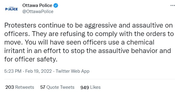 690. Police propaganda channel would be quite funny if it wasnt so serious - using chemical weapons on the people... and the police are exempt from the mandates that the people they are spraying are protesting about... https://t.co/uQVsvQvFJq #police #pepperspray #ottawa https://t.co/mj9952BEYw