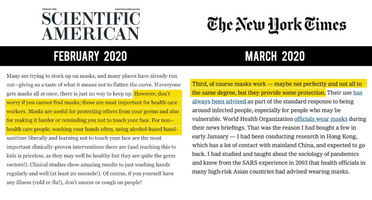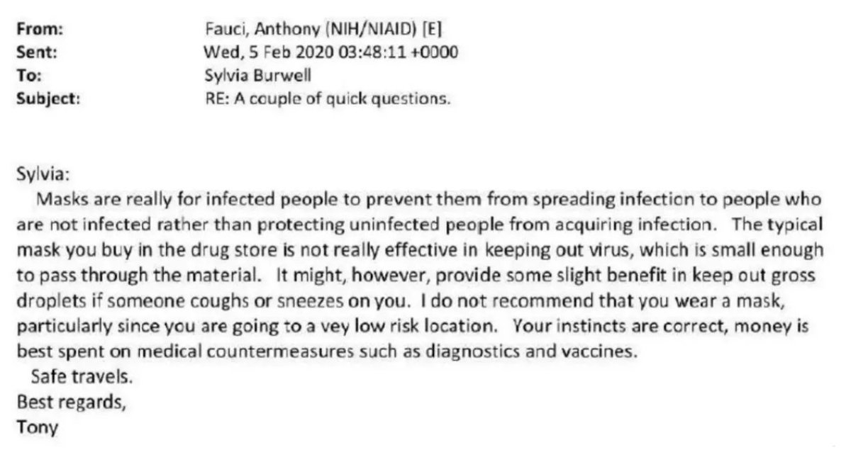 6. The Great Mask-Science Flip Flop of 2020 Tufekci was not the only media ordained COVID expert to have a convert to mask cheerleaders. Anthony Fauci did the same in an email to the former head of HHS. Fauci "I do not recommend you wear a mask."