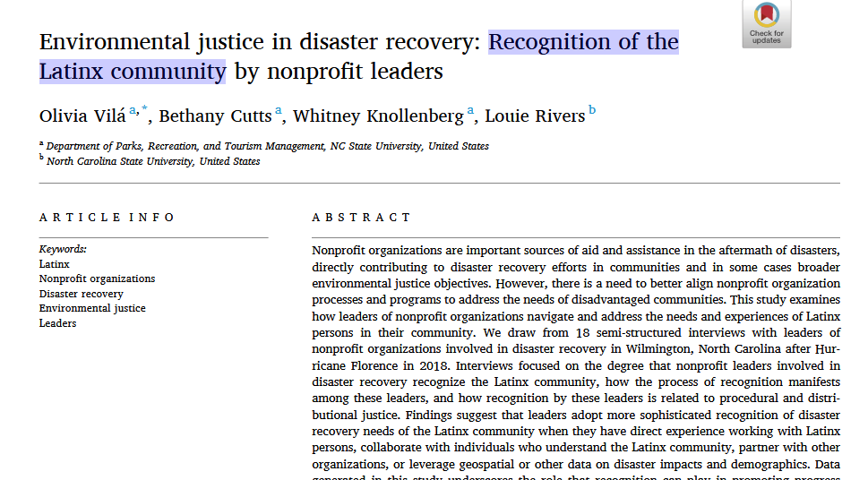 10/ Another paper in the NOAA repository is about "Recognition of the Latinx community by nonprofit leaders" This paper is about the Critical Social Justice concept of "recognition" wherein communities are understood by their salient political identity in terms of race, class, gender, ability status etc, and then have those identity characteristics "recognized" as being important by some other group.