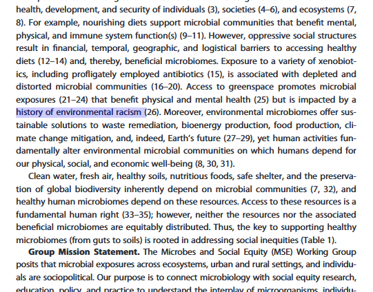 5/ Here is another paper that seeks to advance Critical Social Justice/Woke. This paper says that Oppressive social structures like capitalism, racism, and ableism, are the reason that lots of people do not have healthy microbes in their gut. https://t.co/m3KgeNQgqH