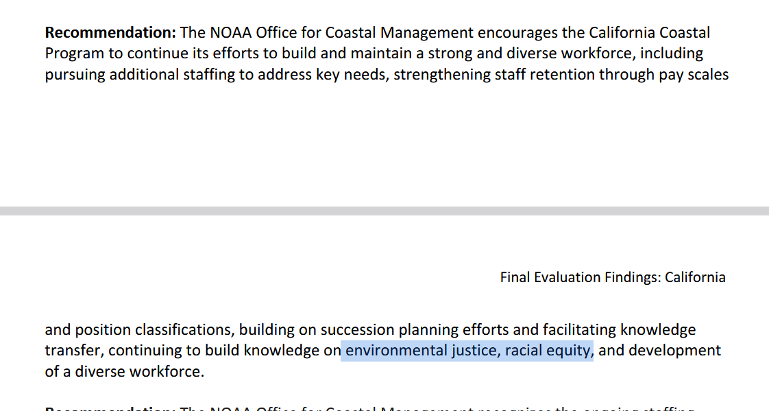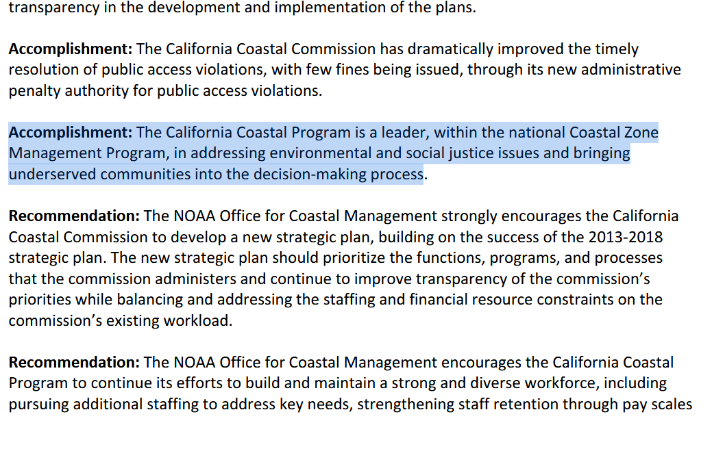 8/ The NOAA discovered that California Coastal Commision had staff from its agencies go through "racial equity" training. The NOAA considered this focus on Social Justice to be an accomplishment. https://t.co/v7cR3Nhf9M