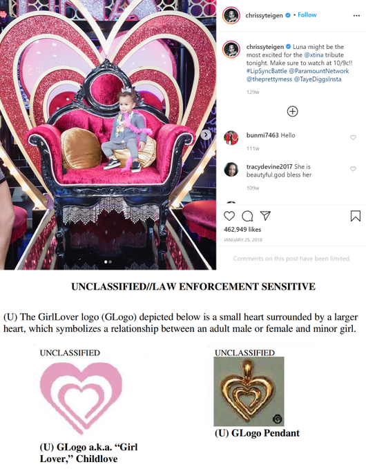 Another symbol they frequently use on their clothing is the bloody handprint. It looks as if to be marking this young girl. The Wilson handprint has been seen many times on celebrity clothing, paintings, even costumes. They are giving a nod to Frazzledrip. https://t.co/jqvOp8TbUM