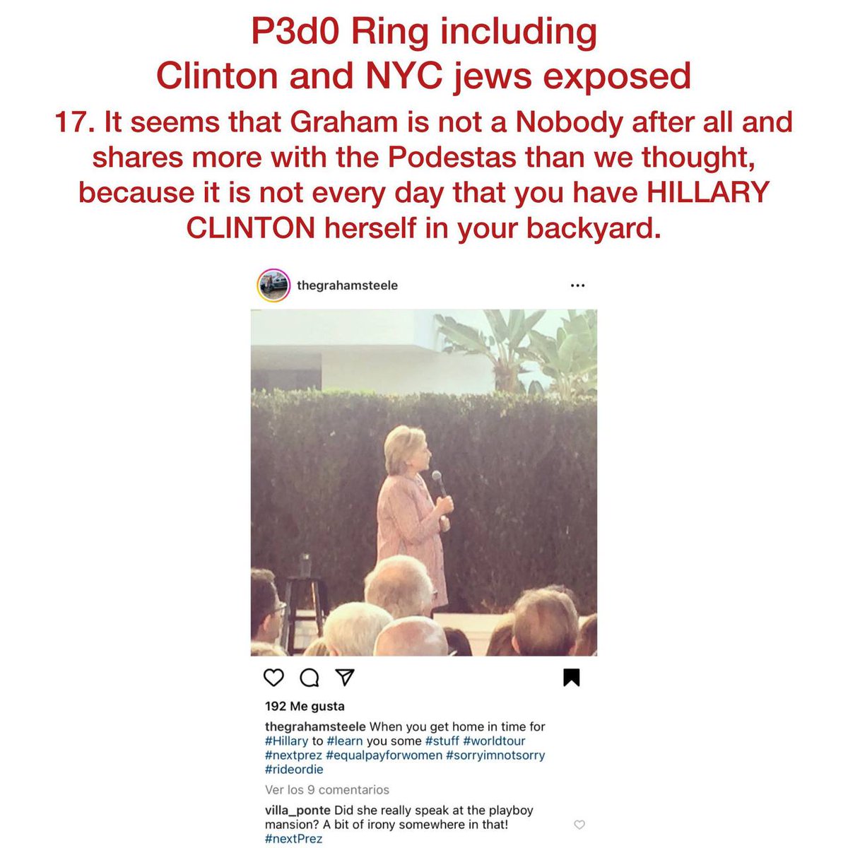 #pizzagate #pedogate 🧵 17/40 Wait a minute, Hillary Clinton lecturing in Graham backyard daily? Hmmmm... 🕵️♂️