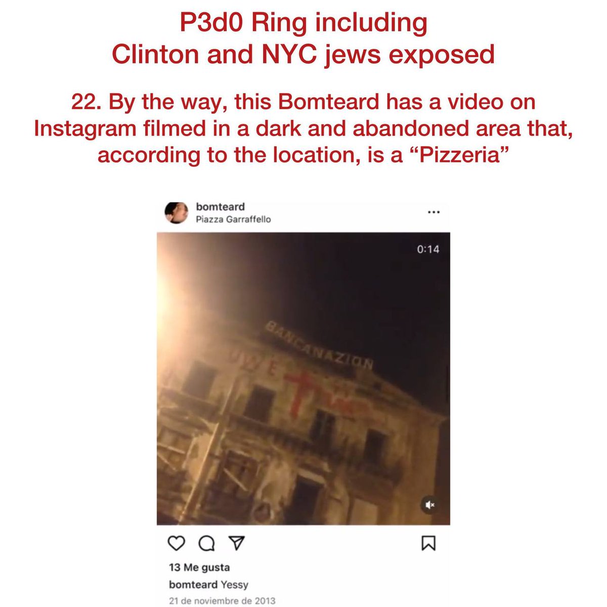 THREAD: THE CLINTON’S & THEIR TIES TIES TO A POTENTIAL CHILD PORN SITE, PIZZAGATE & DISTURBING INSTAGRAM POSTS! In light of @dom_lucre bombshell report tying Bill and Hillary Clinton to a potential pedophile ring, I want to give a history of their ties to a potential porn site and disturbing images that exploit children. This is Pizzagate. James Alefantis is the owner of Comet Ping Pong. Alefantis and the media have claimed for years that his restaurant is a “family friendly” pizza joint. He has hosted fundraisers for Hillary, a birthday party for John Podesta and was a regular visitor at the White House under Barack Obama’s presidency. Alefantis even posted a photo of then President Barack Obama in the White House play ping pong with a child and put the hashtag “White House Christmas party” in the caption. The media distorted Pizzagate to make it all about Alefantis and his basement that they insisted didn’t exist. What the media failed to tell you is that Alefantis said himself in an interview with Metro Weekly about Comet Ping Pong, that he stores their tomatoes in the basement. In 2016 after the Podesta E-mails came out, Alefantis reversed course and made the new claim that Comet Ping Pong has no basement. Not one person in the media asked him why just a year prior he referenced in an interview that the pizza parlor did have a basement. He posted a photo of a child taped to a table. He also posted a photo of an infant and called her a “hotard”. In another photo of a baby he wrote the caption “Why does Daddy like BUTT?” In one photo there is a man holding a baby with what appears to be sex and/or anal beads around the child’s neck and the caption is “chicken lovers”. Chicken lovers is a pedophile code word defined as an adult man who is sexually attracted to children. In another image, there’s three people wearing creepy masks including what appears to be an underage boy. This appears to be at least the depiction of some kind of Satanic ritual that could be a scene straight out of Eyes Wide Shut. I want to highlight two more photos, and please keep in mind there are many more disturbing images out there that I haven’t included in this column. Alefantis also posted a Jeff Koons photo that appears to be a man penetrating a small body that looks like the body of a child. Also, a regular at Comet Ping Pong posted a photo of a man laying on the floor bloodied in underwear and tagged the pizza joint as the location. Alefantis commented under this photo “sex”. More disturbing — there is a cage in the background. What was that cage used for?