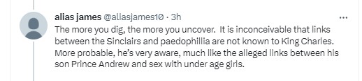 85. Referring to tweet 83. Tom Minogue @MinogueTom is North of the border and been writing about child abuse and other matters on his excellent blog for years, and he knows alot. https://tomminogue.com/tom/?page_id=633… #tomminogue #KingCharles #jimmysavile