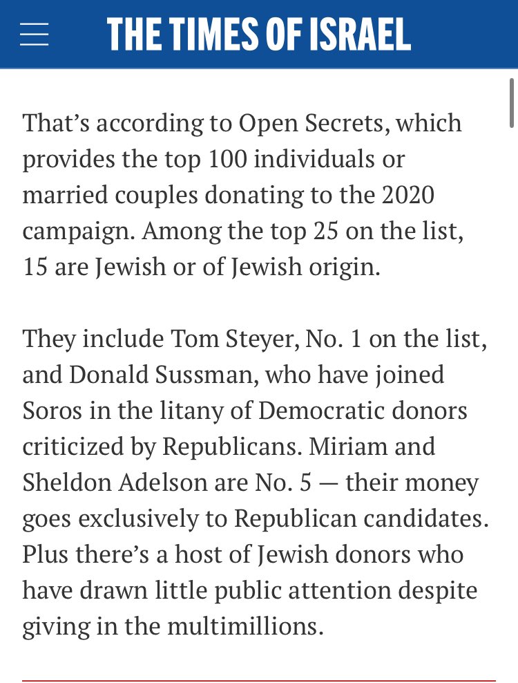 3b- Real Red Pill 💊- Most political donations on both sides of the isle are from rich Jewish ✡️ donors…. 🧵 7/23 https://t.co/aRhRBIKDea