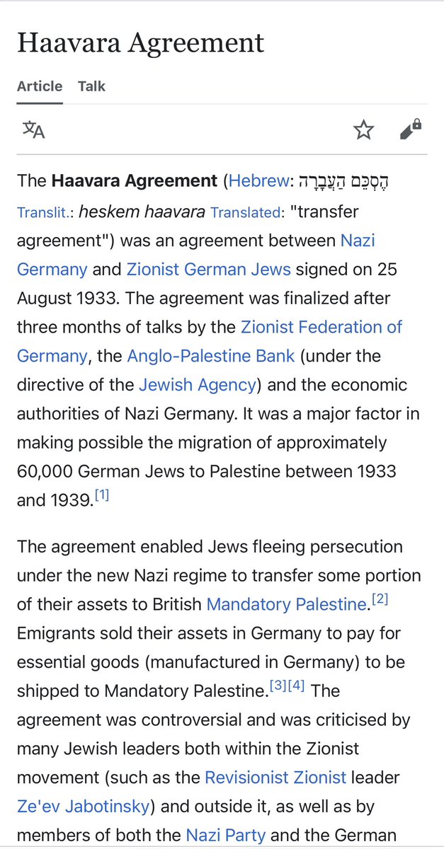 This also aligned with earlier efforts, such as the Haavara agreement, where a pact was made by Hitler allowing Jews to return to Palestine WITH ALL THEIR WEALTH, and to expatriate safely from Germany. https://t.co/7Mit7jjg3c