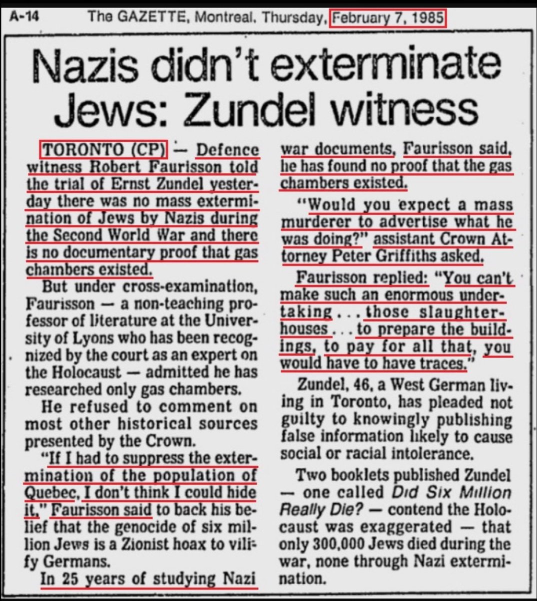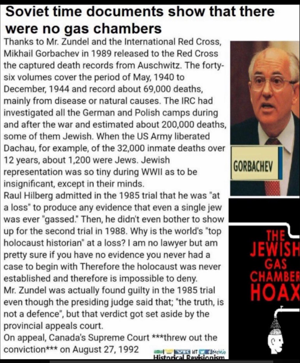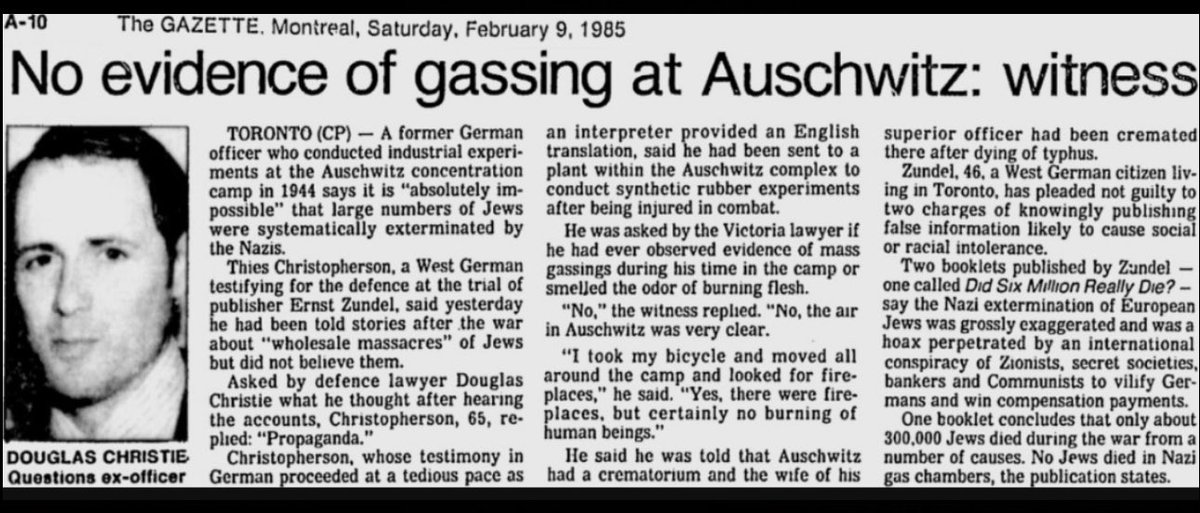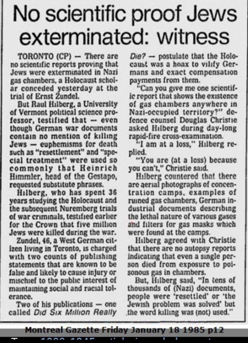 And this isn’t just the opinion of Kubovy. In the famous Zundel trial, it was made crystal clear by Hilberg, a revered Jewish holocaust historian, that there’s NO SINGLE PIECE OF RECORDED EVIDENCE to support the idea of mass genocide by the Germans. How unusual https://t.co/T6RthqJLRL