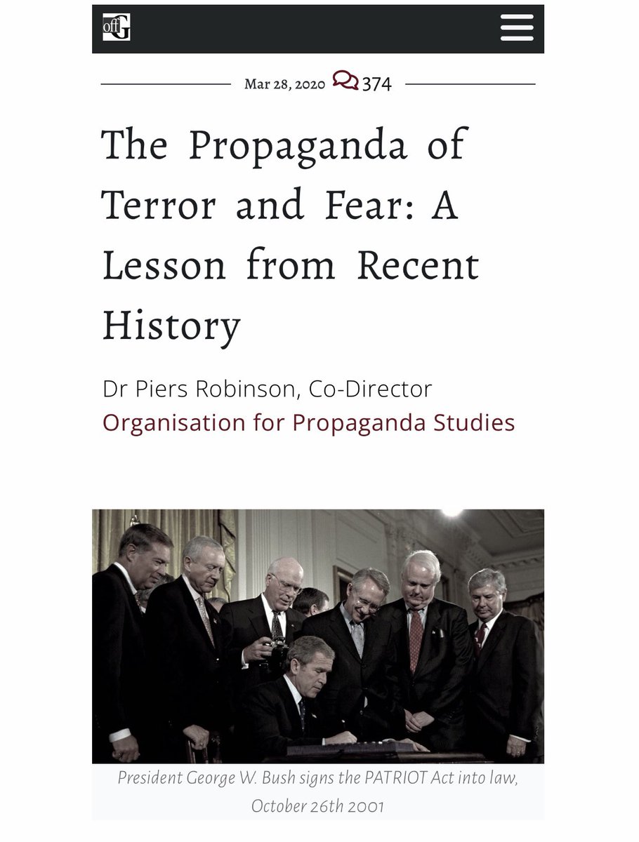 *Flashback* The Propaganda of Terror and Fear: A Lesson from Recent History 28 March 2020 By Dr Piers Robinson, Co-Director Organisation for Propaganda Studies https://off-guardian.org/2020/03/28/the-propaganda-of-terror-and-fear-a-lesson-from-recent-history/ @PiersRobinson1 @OffGuardian0