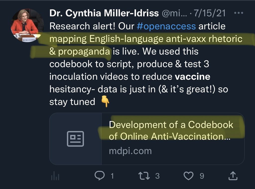 10. If Cynthia Miller-Idriss is not teaching people what to think, how does she explain her extensive work to stop people thinking about not taking vaccines, or from reading online news critical or vaccines? That is literally the science of brainwashing people what to think:
