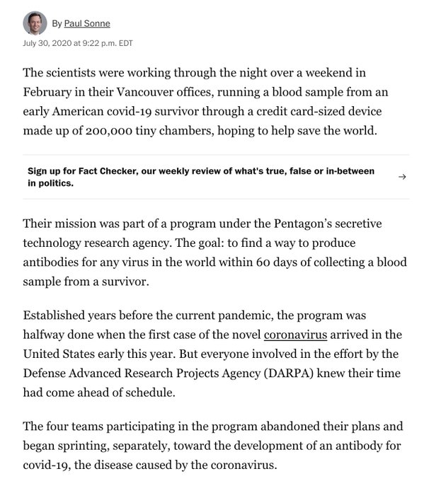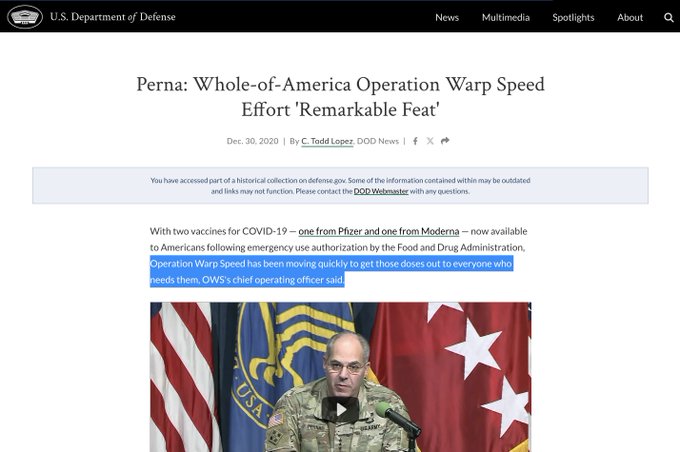 (15/17) Army Genral Gus Perna was the Chief Operation Officer of Operation Warp Speed. DARPA, the Defense Advanced Research Projects Agency, developed the tech for the COVID injections starting more than a decade prior to 2020. Source: https://www.defense.gov/News/News-Stories/Article/article/2459464/perna-whole-of-america-operation-warp-speed-effort-remarkable-feat/ Source: https://www.washingtonpost.com/national-security/how-a-secretive-pentagon-agency-seeded-the-ground-for-a-rapid-coronavirus-cure/2020/07/30/ad1853c4-c778-11ea-a9d3-74640f25b953_story.html