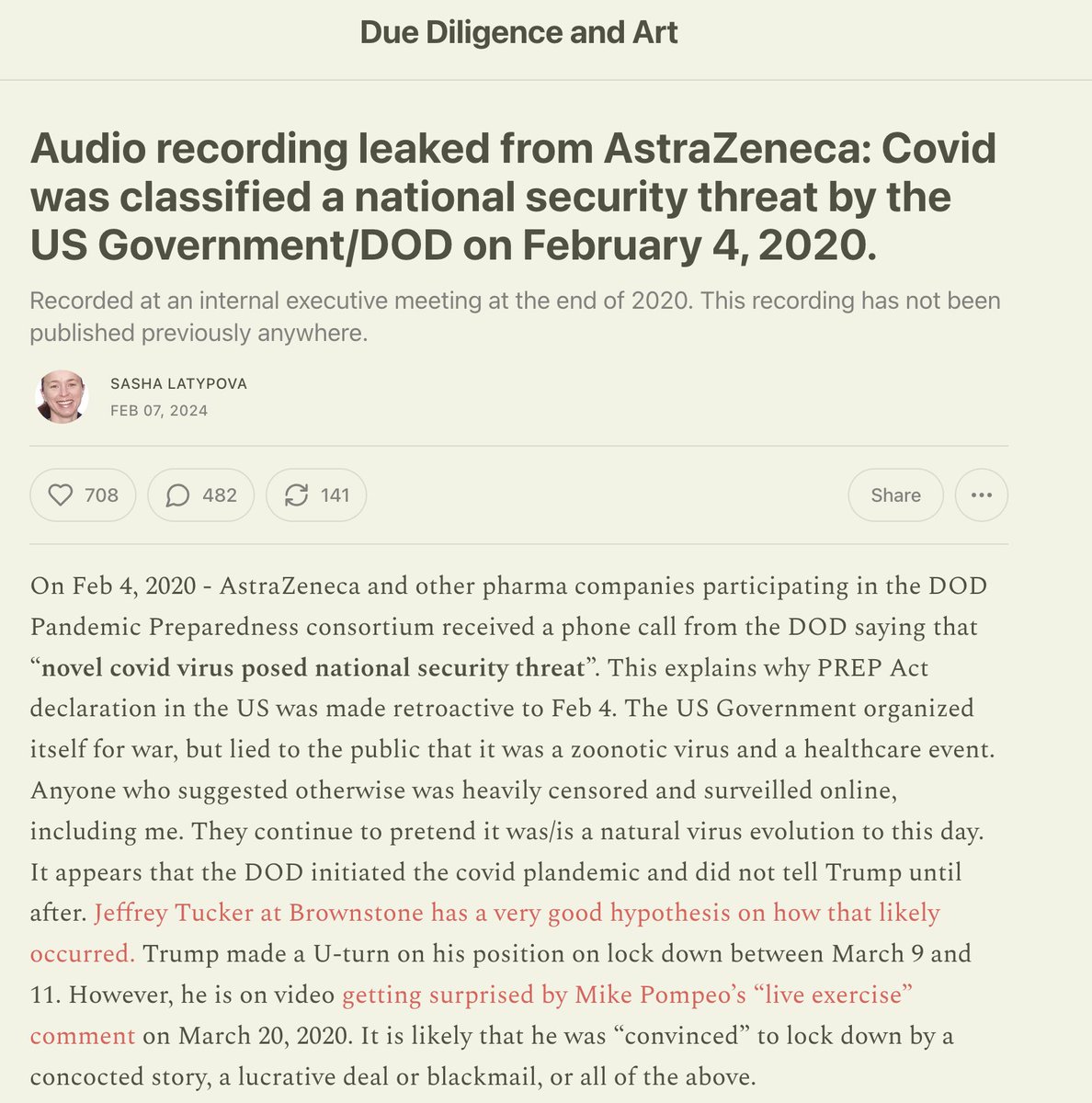 @DrHarveyRisch (16/17) Latypova's Substack post featuring the leaked AstraZeneca call she references in this thread's first clip: https://sashalatypova.substack.com/p/audio-leaked-from-astrazeneca-covid?utm_source=substack&utm_medium=email
