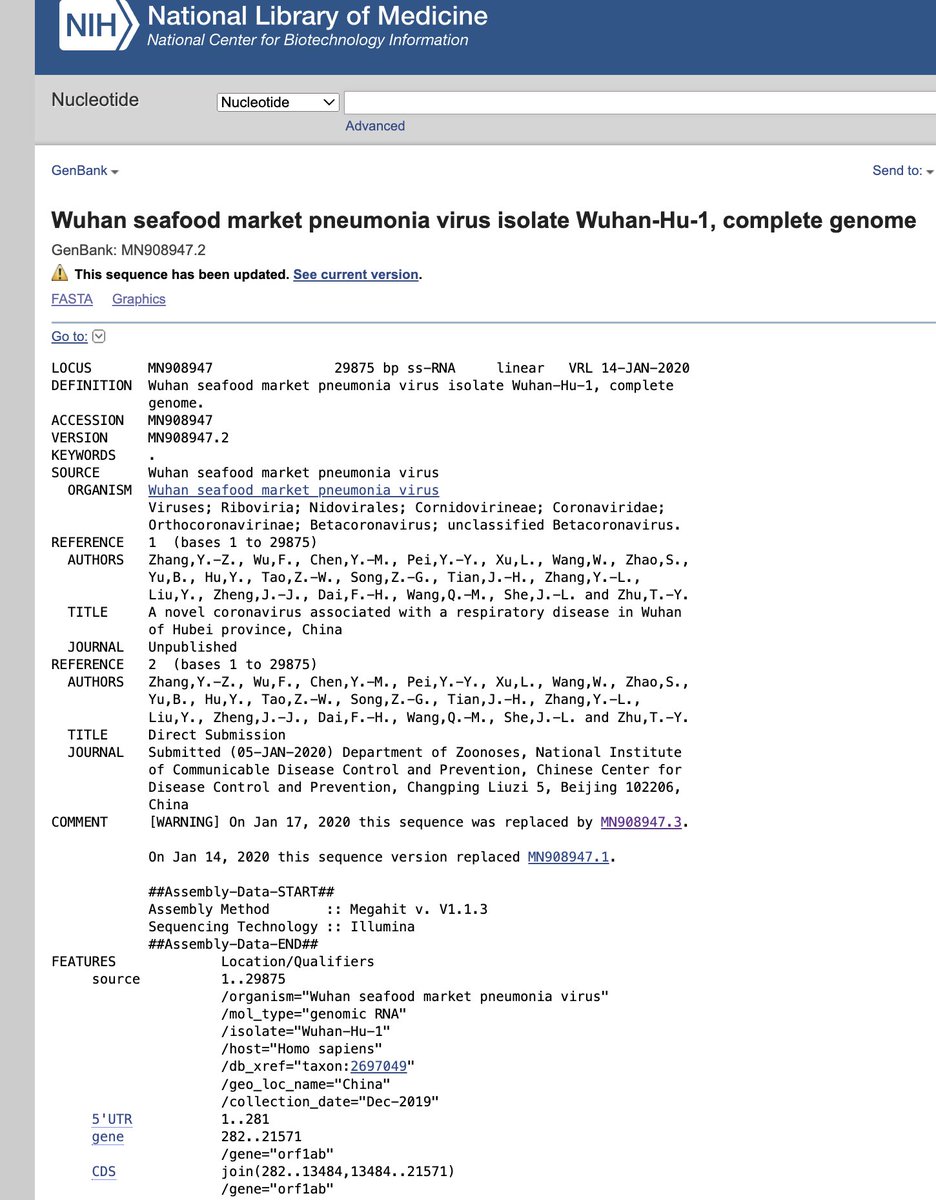 (6/17) Here is the SARS-COV-2 sequence uploaded to GenBank from China: Updated: https://www.ncbi.nlm.nih.gov/nuccore/MN908947.3 Original: https://www.ncbi.nlm.nih.gov/nuccore/MN908947.2