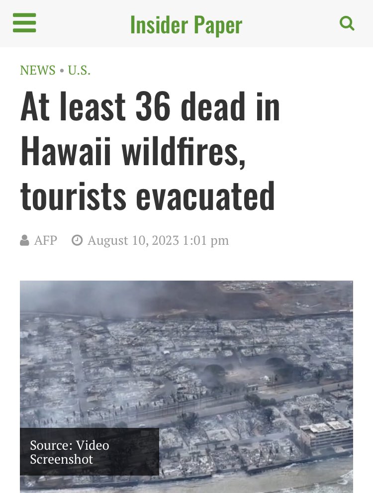 HAWAII UPDATES: ''I just got out of a meeting where I was informed by someone in the Mayor's office about developments that are being kept from the public. I am not a conspiracy theorist and I don’t want to make trouble but here’s what I’ve heard. The amount of fatalities is expected to be more than 500 but less than 1000. Many of the fatalities will be children who were at home because they canceled school, parents were working, and were not there to evacuate the children. The children had no idea they needed to leave and by the time they noticed their homes or apartments were on fire, it was too late. The government is worried about how we will react when we learn that the fire department left the fire earlier in the day and claimed it was 100% contained knowing that the winds were expected to be 70mph by the afternoon. This is against all fire control protocols: The fire department should not have left the original fire unattended. They are scared that the public calls for accountability will be more than they can control and protests and riots will occur. They plan to lock down Lahaina for several months. It will take months to clean up the hazardous and environmental contamination. They won’t have enough housing for all the displaced. There were 2,000 folks unaccounted for this morning. They found 700 today but there are still 1300 missing. They are very worried that the community is going to freak out when they find out how not a single fire truck responded to the sinister. The emergency sirens were not activated (hurricane sirens) and the loss of life could have been kept down by better emergency management which utterly failed. I’m not trying to make waves or stir up problems but I was so angry and sad when I found out how many children are dead that I knew I had to post this and let everyone know what I have learned. It’s time for our officials to stand up, tell the truth, and face the music. They failed Lahaina guys: Our government is full of incompetent nepotism.'' - Oahu whistleblower.