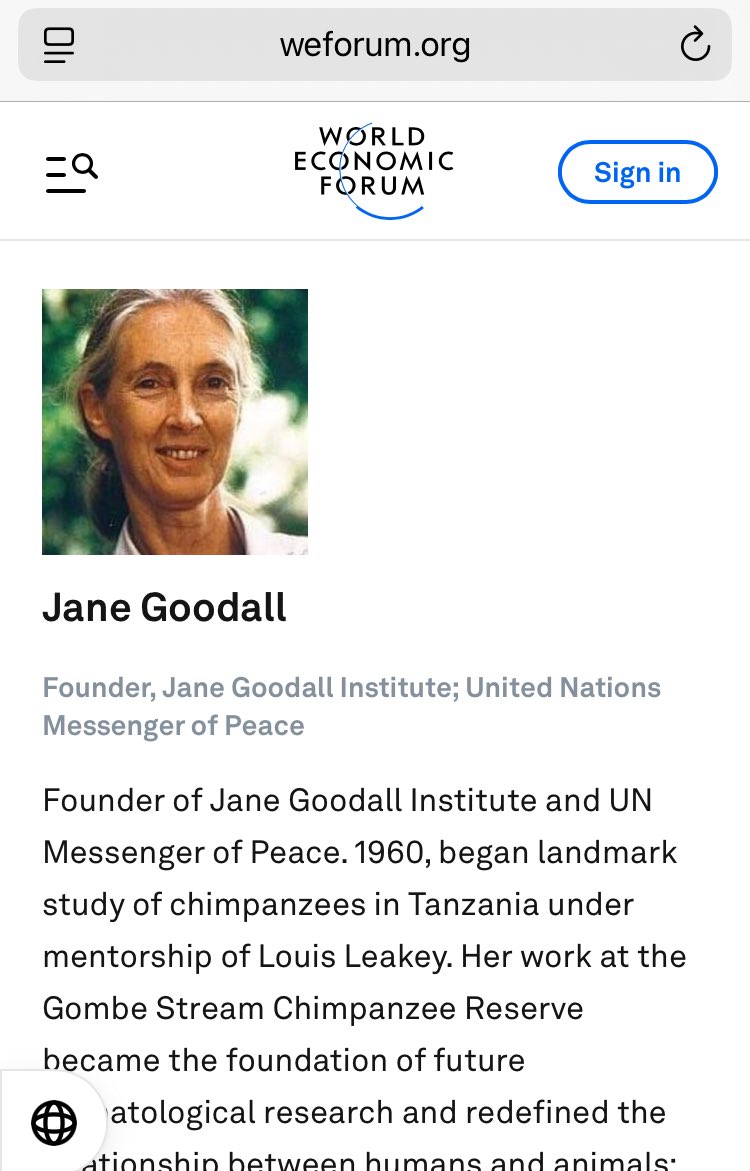 🧵 1/ WEFSpeaker Jane Goodall Advocates Reduction of Global Population By 90%‼️ WEF member has touted a shocking suggestion for meeting the globalist organization’s“Net Zero”targets‼️ English primatologist/ anthropologist Jane Goodall, who WEF lists as one of its“agenda-🙏👇
