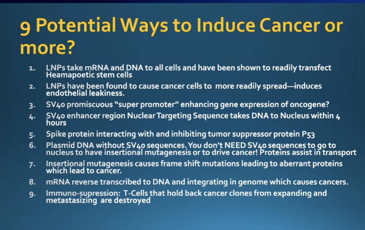Powerful testimony by dr. Kevin McKernan: "Thank you, Senator Johnson. I very much appreciate you giving us this audience. Many in this audience have been subjected to years of censorship on this topic. What I want to talk to you today is about the DNA contamination that our team at Medical Genomics discovered in the mRNA vaccines. We're specifically speaking about Pfizer and Moderna in this case. This work has been replicated by many labs around the world." "And now the FDA, the EMA, and even Health Canada have admitted to this. The regulatory agents have admitted that Pfizer also omitted the SV40 sequences that are in their vaccine. They've deemed this contamination to be of little consequence, claiming the DNA is of too little concentration to matter or to be containing DNA of no functional consequence. These statements are false and are not supported by any independent testing by these regulators." "After the regulators have admitted to being deceived, they ask the opinion of the party that deceived them, how bad was the deception? They shockingly believe the answer they were given, which is that these sequences have no relevance to plasma manufacturing. As someone millions of plasmids, I can assure you that this is an overt lie. DNA contamination can lead to insertional mutagenesis. This is actually declared in Moderna's own patents regarding mRNA vaccines." "This is US patent 10,898,574. This is also supported by LIM, et al., which speaks to the rate of spontaneous integration in the genome during transfection. We are using transfection, after all, with LNPs. The SV40 DNA is, in fact, functional. It is published as a potent gene therapy tool in a nuclear targeting sequence, as described by David Dean, et al. DNA is also known to bind to the tumor suppressor gene known as P53. This is described by Draymond et al. The DNA contains the promoter for the antibiotic resistance gene in this plasmid as well." "No plasmid manufacturing can occur without a promoter for the antibiotic resistance gene, so it is clearly functional and key to plasmid manufacturing despite the FDA's comments on this topic. The DNA quantity in many vials is over the 10 nanogram per dose limit, but it does vary substantially between lots. When we use both qPCR and fluorometry, these two tools give us different answers. This should be a concern that they're between these different tools. Moderna's own patents, US patent 10,000,077,439, teaches that qPCR underestimates the quantity of this contamination, and the DNA regulators are once again allowing them to cherry pick between these different measurement tools." "DNA guidelines used to be a thousandfold lower before the NCVIA Act was established, which provided liability protection for pharmaceutical companies. The limits were devised based on the 10 minute half-life of DNA in the blood, naked DNA in the blood. This DNA contamination is not naked. It's protected in lipid nanoparticles, which delivers this DNA to cells, which should arguably have limits set to the ones prior to the NCVIA." "We have since found Pfizer lots, 1F1042A, that are at least 10-fold over any lot we've measured before PCR, which is known to underestimate this quantity. For those not familiar with PCR, you may have received CT scores of 35 that called you positive for COVID. We're seeing CT scores of 13 on the DNA that you're injecting into children. We've applied these vaccines to some cancer cell lines and have evidence that it enters the cell and can survive several cell divisions." "We have preliminary evidence, although this requires replication in other labs, that this DNA can integrate into the genome. We found two spike sequence integration events in ovarian cancer cell lines of CAR3 into chromosome 12 and 19 very recently. Since these vaccines were expected to only contain mRNA, they were never assessed for genotoxicity studies. These studies were therefore. being conducted as guinea pigged U.S. citizens as we witnessed an unprecedented rise in cancer drug sales since the vaccines rolled out." "In summary, the vaccine manufacturers' own patents teach that the methods being used to monitor this DNA are not fit for purpose. Their patents teach the insertional mutagenesis risks present in L&P-based mRNA vaccines. The only people who are in denial of these facts are the regulators who are routinely hired to work for these very pharmaceutical companies." "Two of these regulators resigned over the wonton approval of these vaccines for young patients from them, it is time for our representatives to repeal or review the PDUFA Act of 1992. This act allows regulators to defray the costs of regulation by accepting payments directly from the companies they regulate. Over half of the FDA's budget is sourced through this act. They cannot be voted into office, they cannot be voted out, but they can approve dangerous library free mandated vaccines." "These policies have harmed the public torn our country part as immune nurses are forced to choose between their jobs and useless and even dangerous vaccines. DNA contamination was not part of any informed consent process. And many universities still mandate these shots based on the guidance and approval of our regulators who have become nothing less than a marketing division of the companies they regulate. Thank you for the time."