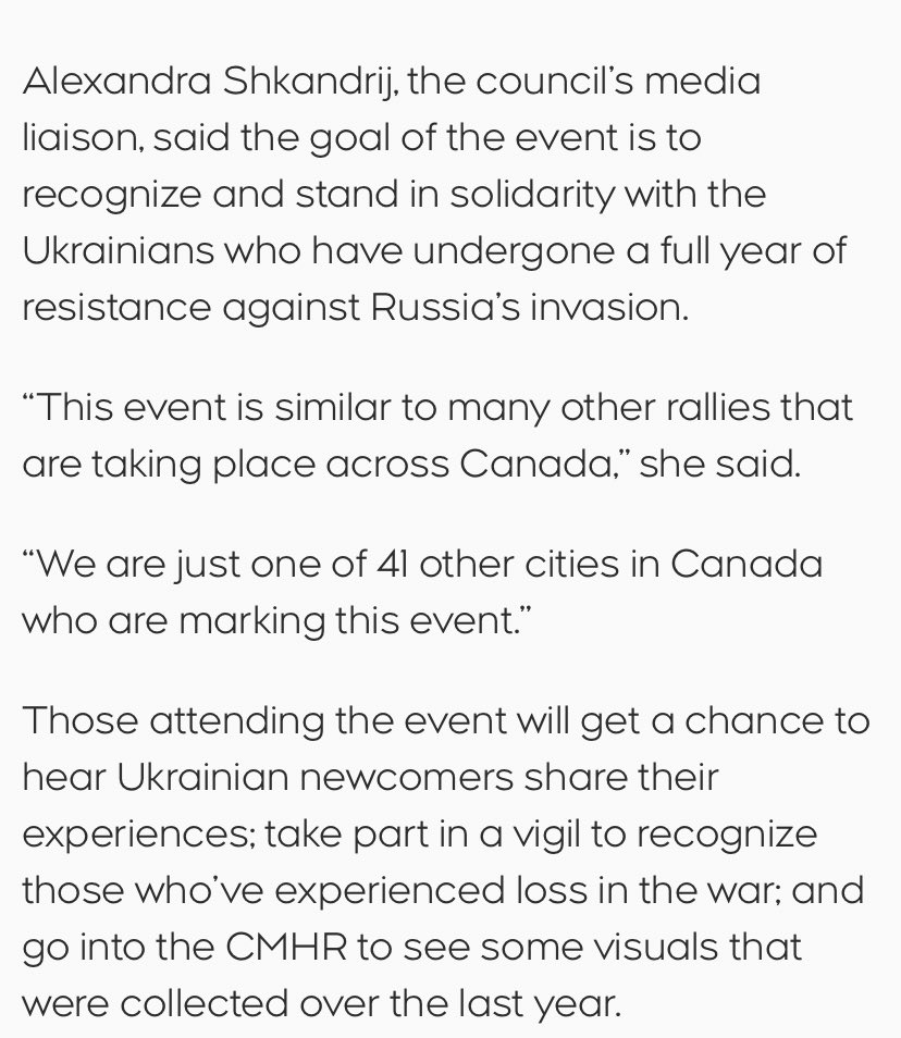 And Myroslav’s daughter is Alexandra Shkandrij - a member of the Ukrainian Canadian Congress who is organizing protests and rallies and lobbying the Government of Canada to send more humanitarian aid and weapons to Ukraine. https://winnipeg.ctvnews.ca/i-m-sure-we-will-win-manitoba-recognizes-one-year-since-start-of-war-in-ukraine-1.6288365