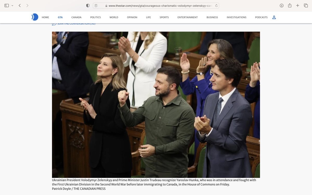 14. As usual, if it’s a report about Trudeau’s misconduct, you’ll read about it in the foreign press before you’ll read about it (if ever) in Canada’s news media, which has been colonized by Trudeau: https://forward.com/fast-forward/561927/zelenskyy-joins-canadian-parliaments-ovation-to-98-year-old-veteran-who-fought-with-nazis/?amp=1