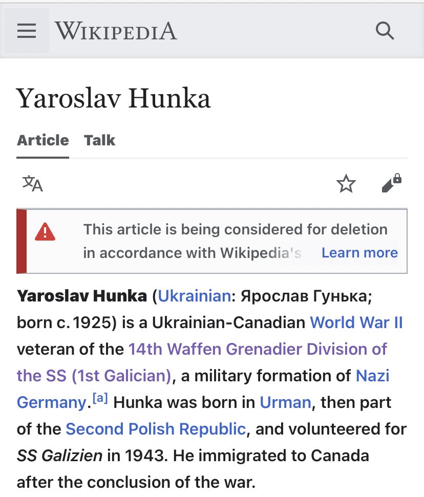 69. Yaroslav Hunka's wikipedia is apparently being considered for deletion, in line with the globalist Ministry of Truth Orwellian guidelines. https://web.archive.org/web/20230929005837/https://en.wikipedia.org/wiki/Yaroslav_Hunka #wikipedia #yaroslavhunka