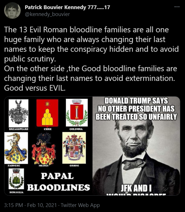 Main source of this info is Patrick Lincoln Kahlooni (a.k.a. @kennedy_bouvier) who is the brother of JFK Jr. who allegedly died 39 hours after birth. His Twitter profile pic hosts a never before seen photo of him where he is clearly several years old. 💊 https://www.humorousmathematics.com/post/the-lincoln-kahlooni-druze-minority-bloodline-the-jesus-strand