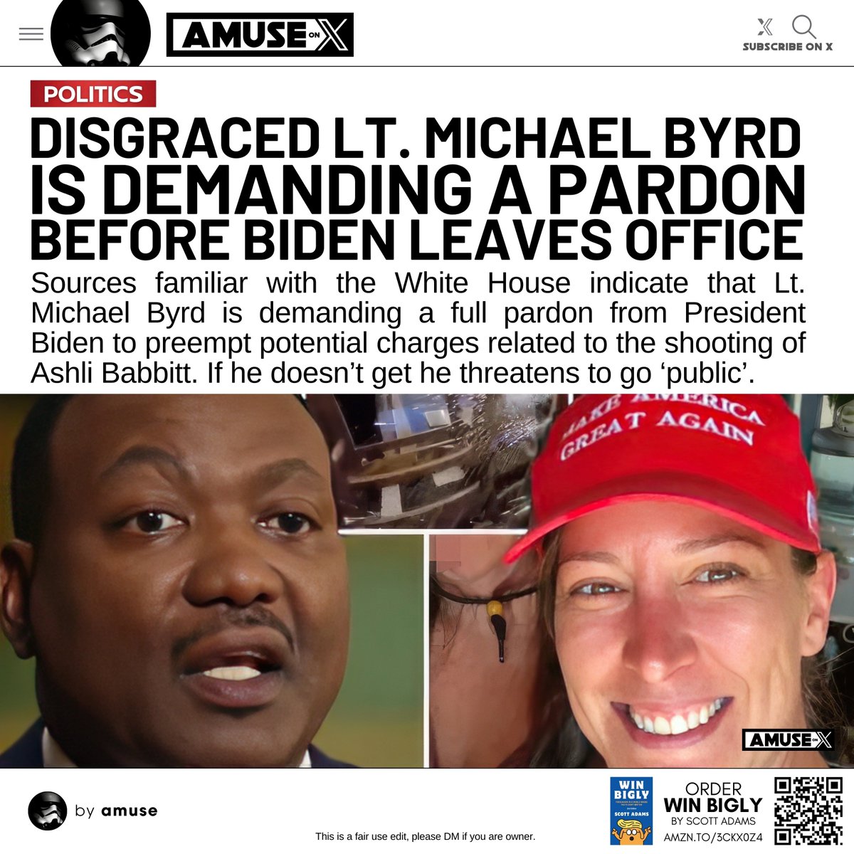 WOW: Michael Byrd, who shot & killed Ashli Babbitt in cold blood without warning, is threatening to “go public” unless he is pardoned. I guess that confirms he’s guilty of murder. I guess that also confirms there’s a J6 bombshell to “go public” with… https://t.co/m4jO07KQQa