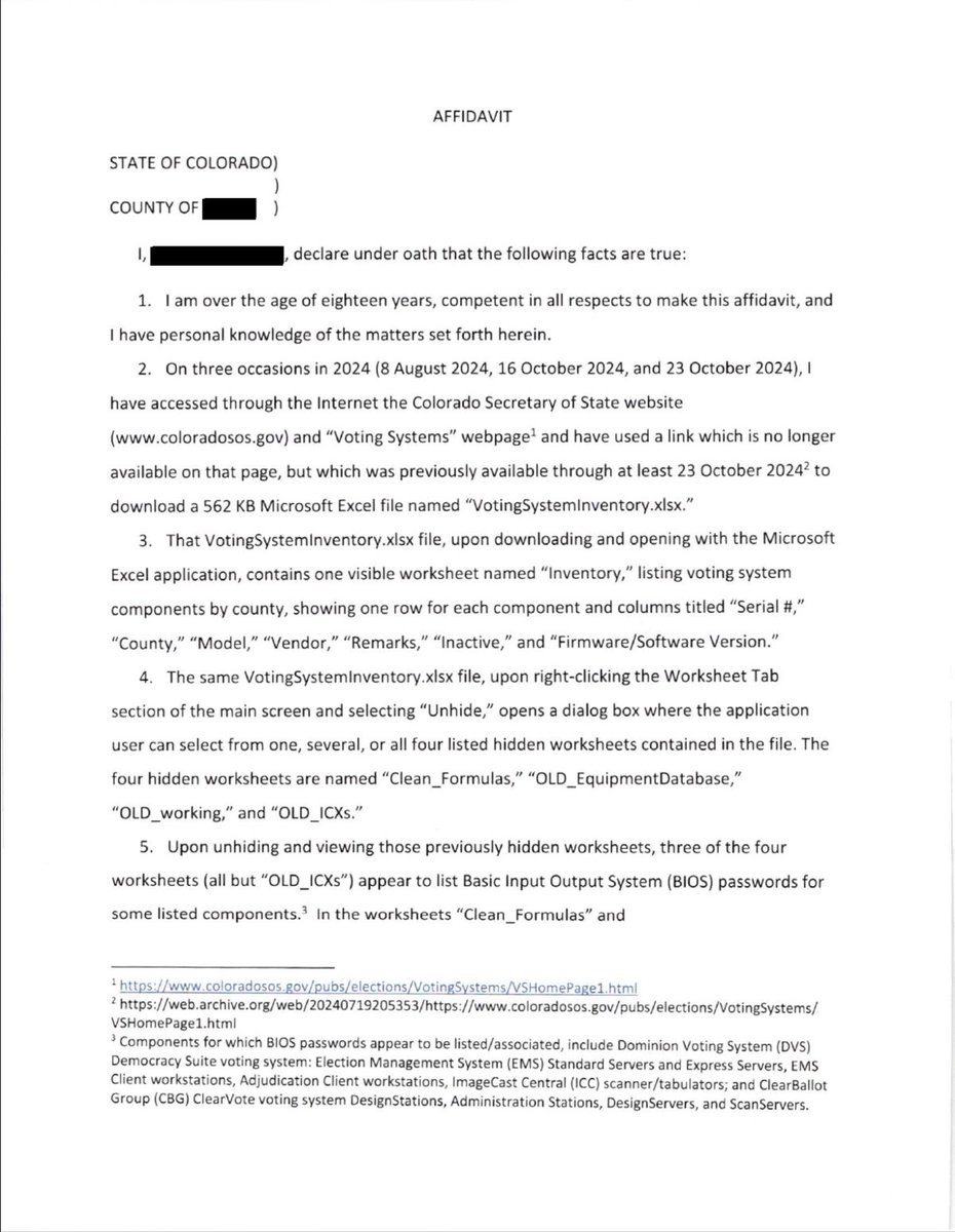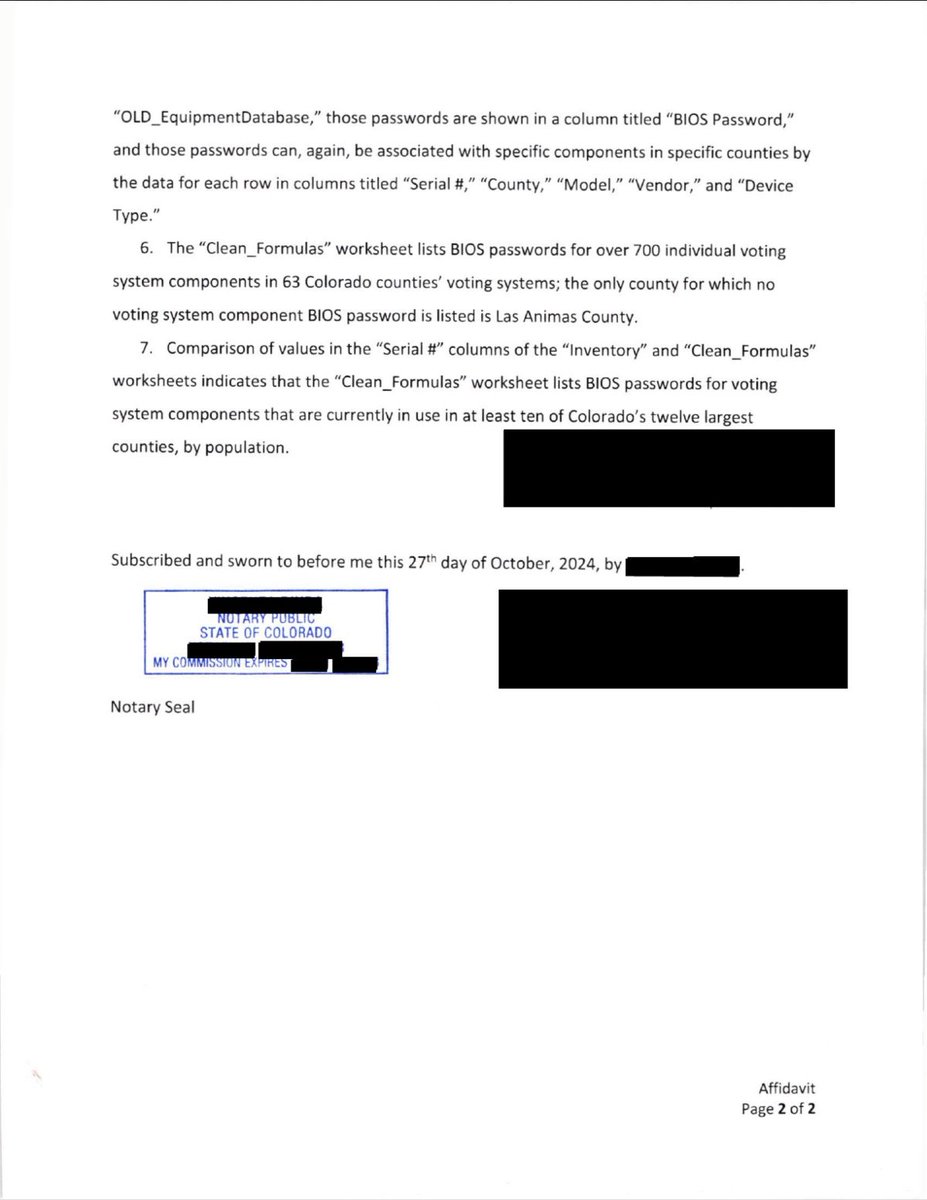 Here's a full copy of the affidavit. Jena Griswold's office confirmed that it did happen and that “the Department is working to remedy this situation where necessary.” “The Department took immediate action as soon as it was aware of this and informed the Cybersecurity and Infrastructure Security Agency (CISA), which closely monitors and protects the county’s essential security infrastructure,” The real remedy for this is to cancel the contracts with the voting machine vendors and hand-count our ballots.