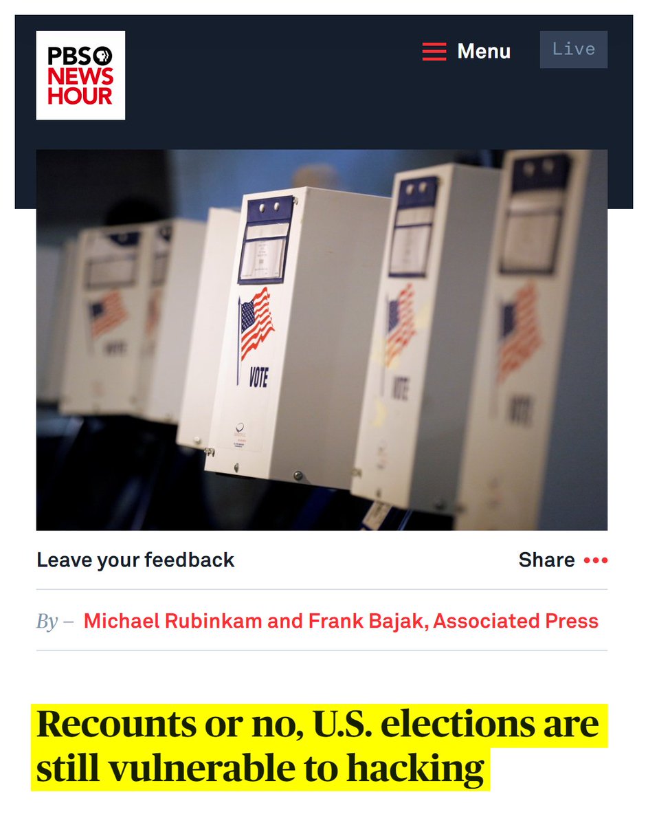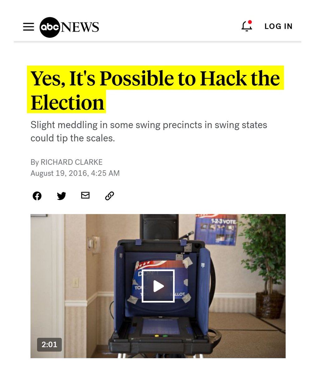 #13 Following Hillary Clinton's defeat in the 2016 election, the corporate media dedicated the next four years to writing hundreds of articles about the extent to which the United States' election system is online, compromised, and vulnerable to hackers. https://kanekoa.substack.com/p/110-articles-affirm-americas-computerized