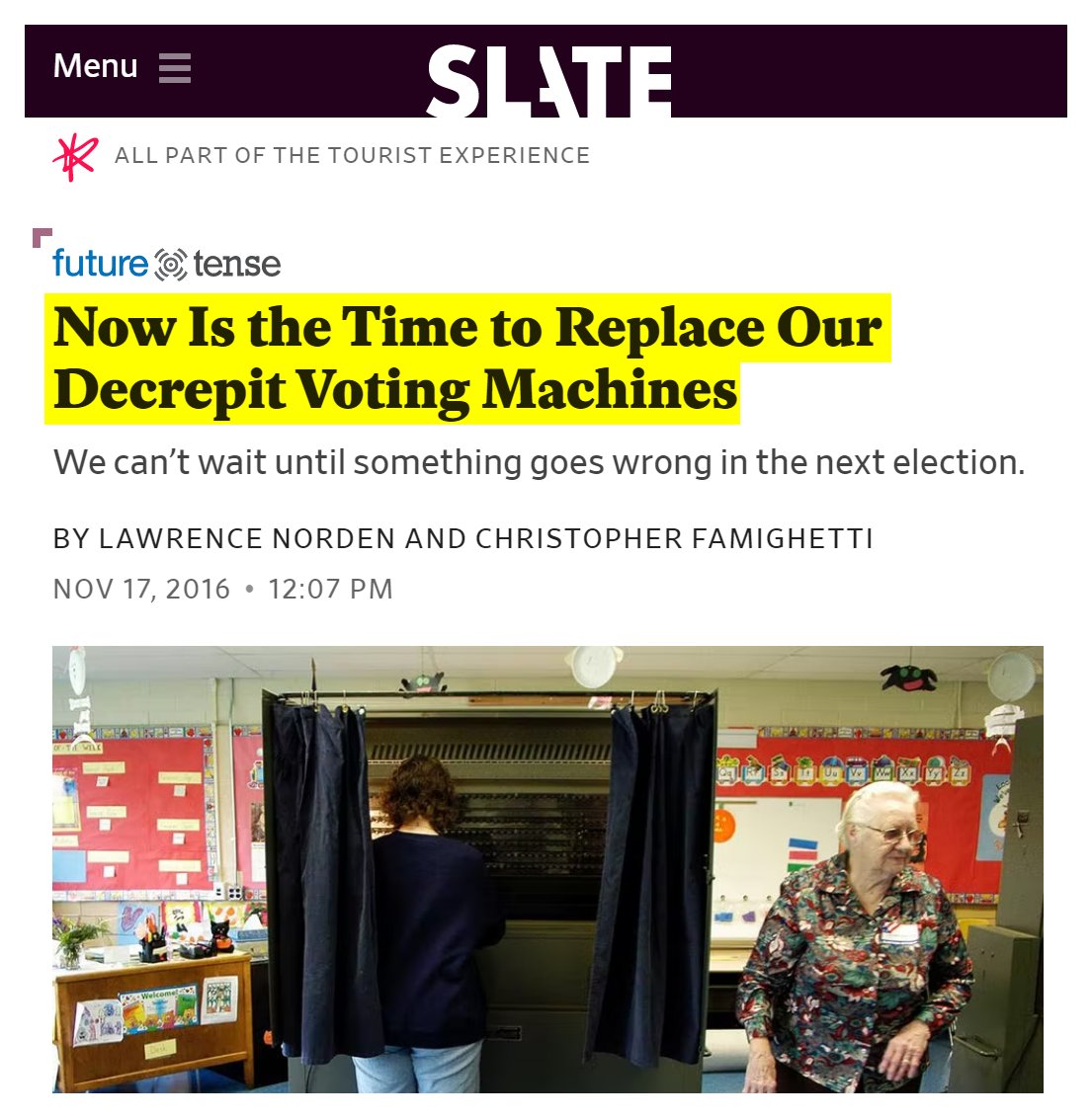 #25 Slate: Now Is the Time to Replace Our Decrepit Voting Machines (Nov. 17, 2016) “With antiquated voting devices at the end of their projected lifespans still in widespread use across the country, the U.S. is facing an impending crisis in which our most basic election infrastructure is unacceptably vulnerable to breakdown, malfunction, and hacking... No one expects a laptop to run reliably for more than a decade. Yet on Election Day 2016, 42 states used voting machines that were at least 10 years old, and 13 of those states used ones more than 15 years old. Perhaps even more troubling, these aging machines are particularly vulnerable to hacking... These older devices often rely on unsupported software (we found machines still operating on Windows 2000) that doesn’t receive the regular security patches that help protect against modern methods of cyberattacks and hasn’t been through the relatively rigorous federal certification program that exists today. What’s more, many of these systems don’t have physical paper trails or ballots to back up the results, meaning there’s no way to independently verify how voters intended to cast their ballots in the case of a suspected hack. Voters complained of touchscreen calibration errors that “flipped” votes in North Carolina, Texas, Nevada, and Georgia and interfered with selecting straight party tickets in Pennsylvania. Optical scan machines malfunctioned in parts of Michigan and Massachusetts, and a few in Illinois had to be replaced because a memory card blew.” https://slate.com/technology/2016/11/now-is-the-time-to-fix-our-old-voting-machines.html