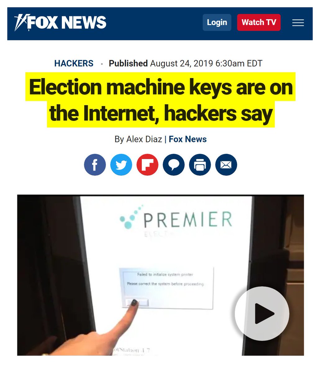 #65 FOX News: Election machine keys are on the Internet, hackers say (Aug. 22, 2019) “I may have the keys to open voting machines used in states across the country, and that is not a good thing. I am not an election official. I am not a voting machine expert, operator, or otherwise affiliated with any federal, state, or local government agency. I am simply an investigative journalist who, upon learning that the types of keys used for these machines are apparently widely available for purchase on the Internet, was prudent enough to ask to take a few keys home as souvenirs from my recent trip to the DEF CON 27 Hacking Conference in Las Vegas. Now, I have access to machines that have been used or are currently in use in 35 different states. Swing-states, coastal icons, and the heartland, experts say…I learned about plenty of other digital backdoors and other disturbing vulnerabilities concerning U.S. election equipment at DEF CON. Like the “hidden feature” that Hursti says was only recently discovered in a machine that’s been in use and under the microscope for more than a decade. “A hidden feature that enables you to reopen the polls silently, and insert more ballots and print the new evidence of the election,” Hursti says. And despite believing that the manufacturers had learned from previously exposed vulnerabilities on that machine over the years, “these [newly discovered] features had been missed” the entire time, Hursti says. I watched Hursti explain this new discovery to Rep. Eric Swalwell, D-Calif., one of the numerous lawmakers who attended this year’s DEF CON, and whose face seemed to drop upon learning of the new revelation. That’s likely because this particular machine has been in use in his home state of California for years…One voting machine was discovered to have a password of “1111.” Better than the voter ID machine with NO password.” https://www.foxnews.com/tech/i-have-the-keys-to-your-voting-machine-probably