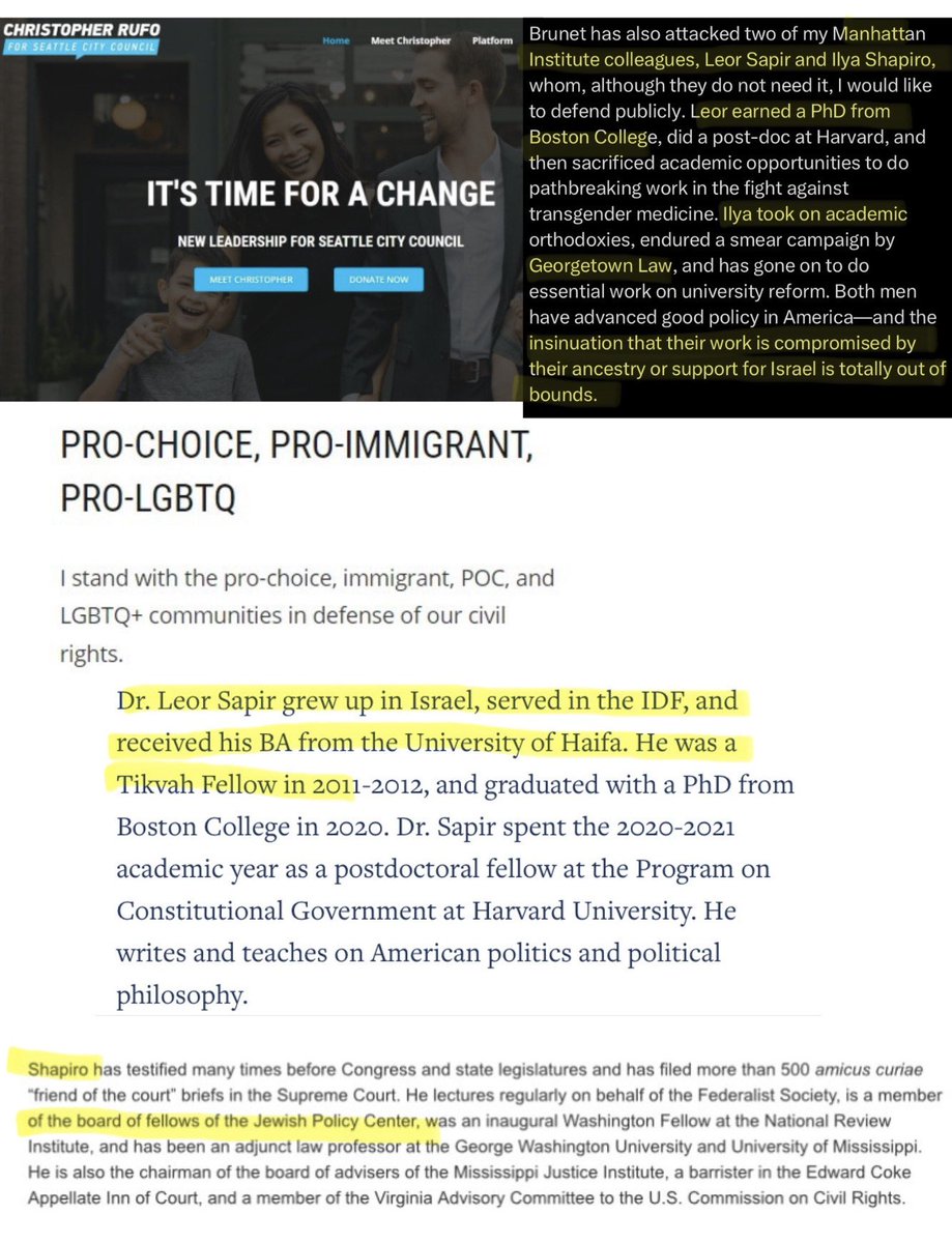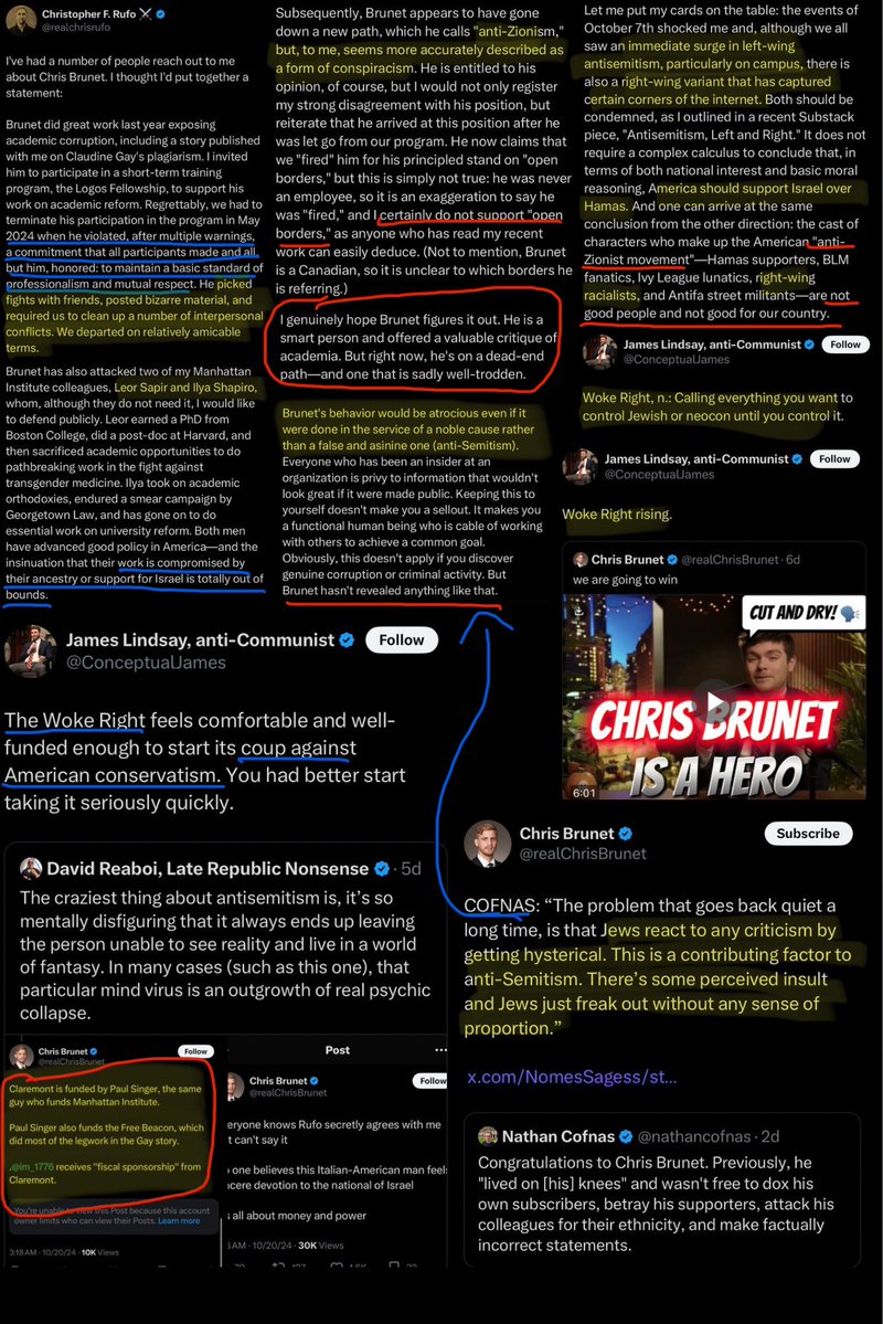 🚨⚠️Nick points out that after Brunet exposed Rufo’s Israeli influence operation, everyone called him unstable instead of addressing the substance‼️ “Brunet came out a year later after being fired and admitted on Twitter last week that indeed Claudine Gay was fired because she didn’t toe the line on Israel. He was attacked viciously by his former mentor, Chris Rufo. Chris Rufo did not address the substance of what Brunet said; rather, Chris Rufo stated that Brunet was troubled, was fired for being disrespectful, and has mental problems, going towards a dark place.” “IM 1776, a publication funded by Claremont, began to attack Chris Brunet, among many, many others. They all came out to attack him, and again, did not address the substance of the allegation, which is this tremendous double standard. Specifically, the source of the funding of the think tank, their seeming complicity in a foreign influence operation, and passing off the plagiarism story as though it was some victory for academic integrity, when in reality they were serving as an extension of Israel’s foreign ministry.” “Chris Brunet raised the concern that two writers in particular, Leor Sapir and Ilya Shapiro, who are also fellows at the Manhattan Institute, might have a pro-Israel bias. He was called anti-Semitic for saying that. Leor Sapir was born in Israel and served in Israel’s military. Ilya Shapiro works at another think tank, which is specifically a Jewish policy think tank that serves to advance Israel’s national security interests. There was another Jewish academic who attacked Chris Brunet, a guy by the name of Nathan Cofnas. He said that Chris Brunet is a vile anti-Semite. But recently unearthed videos reveal that Nathan Cofnas said in a Zoom call earlier this year that Jews will hysterically call people anti-Semites when they don’t have an argument, and it’s getting ridiculous.”