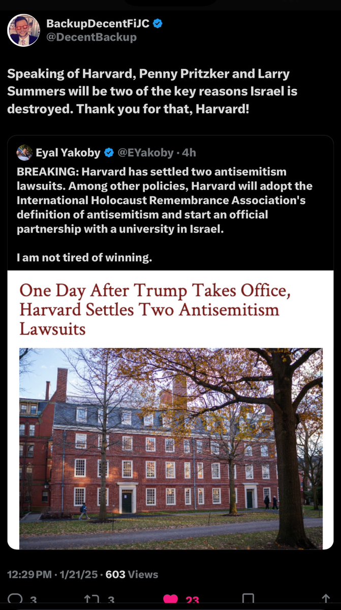 Did you know that Harvard lowered their admission standards significantly recently? Did you know that 95% of the faculty is hard left? Did you know that they receive enormous amounts of cash from foreign governments like Qatar and don’t disclose all of it? Did you know that over the weekend the Harvard law school students got together and spent all weekend trying to collectively overwhelm Wikipedia in order to punish law firms that told Harvard they would stop taking in candidates due to their discriminatory behaviors? Did you know that they no longer even have the same traditional math class that students were required to pass before? Now did you know that most of the judges on the bench are coming from these elite DEI indoctrination factories identifying as law schools? And that we were subsidizing it with our tax dollars? Maybe that’s why President Trump is going so hard after these failed institutions that we pay for which go out and try to destroy the country.